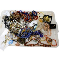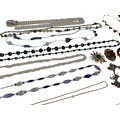 A group of costume jewellery, including a square resin penda...