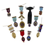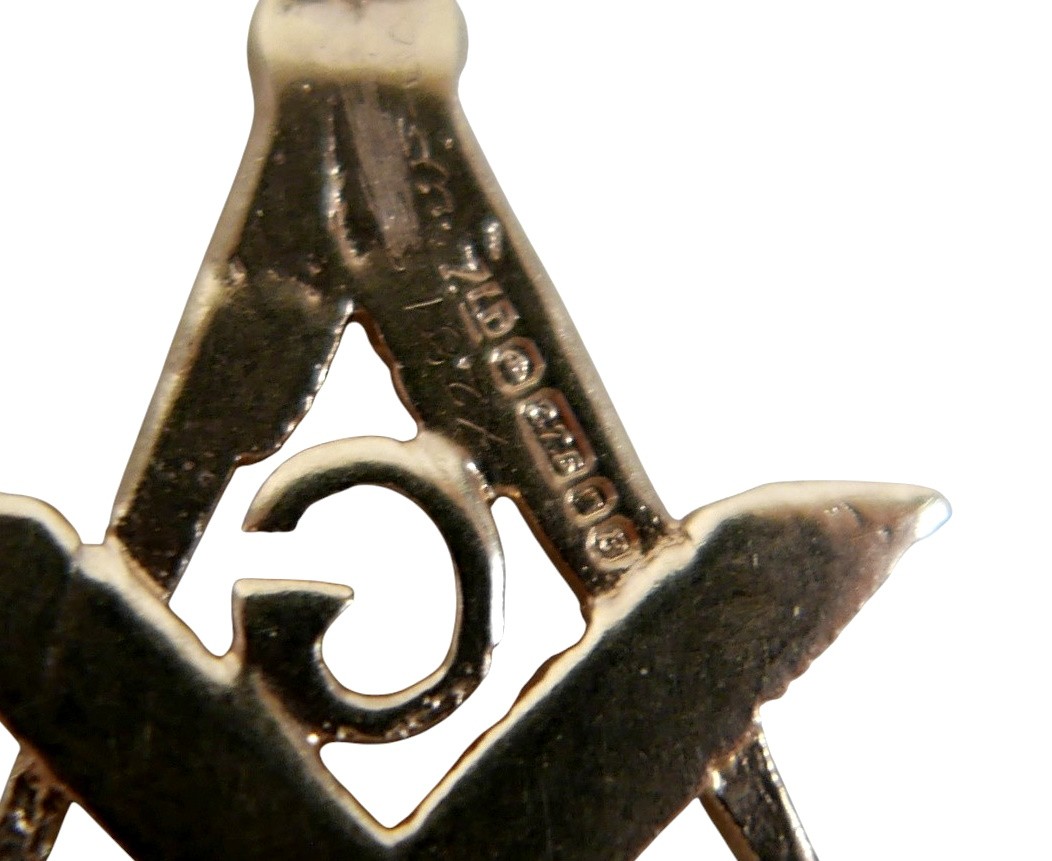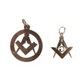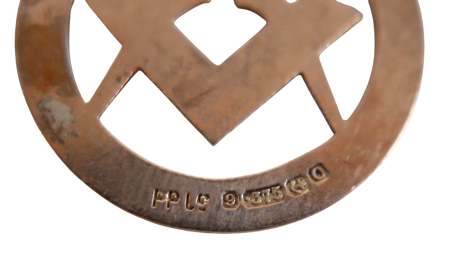 Two 9ct yellow gold masonic fob charms largest 34mm diameter...