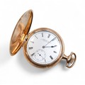A gold plated Elgin full hunter pocket watch roman numeral d...