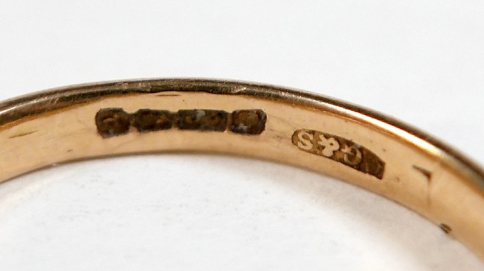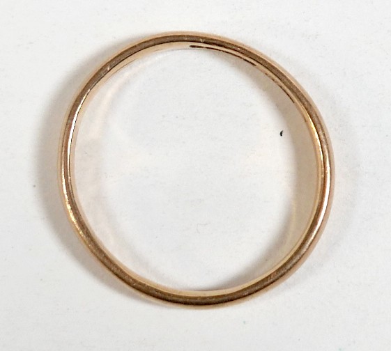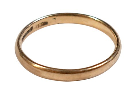 A 22ct yellow gold band ring size Q, 2.5mm band, 3.2g.