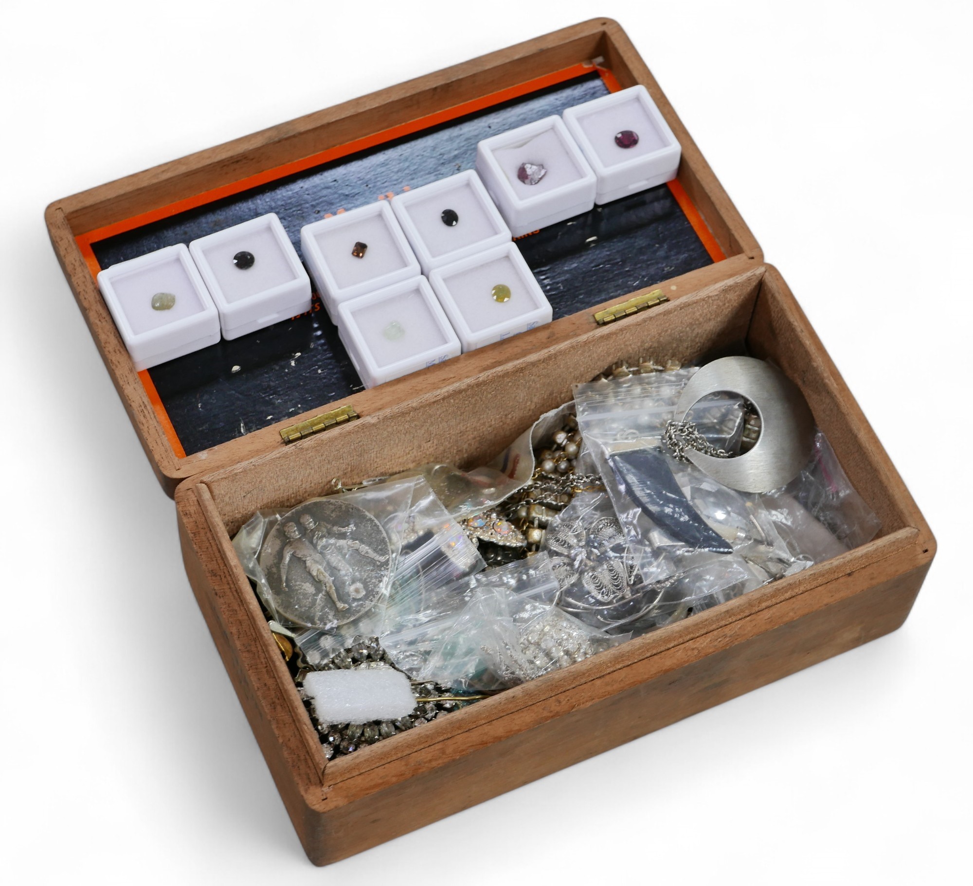 A collection of loose gemstones and costume jewellery, inclu...