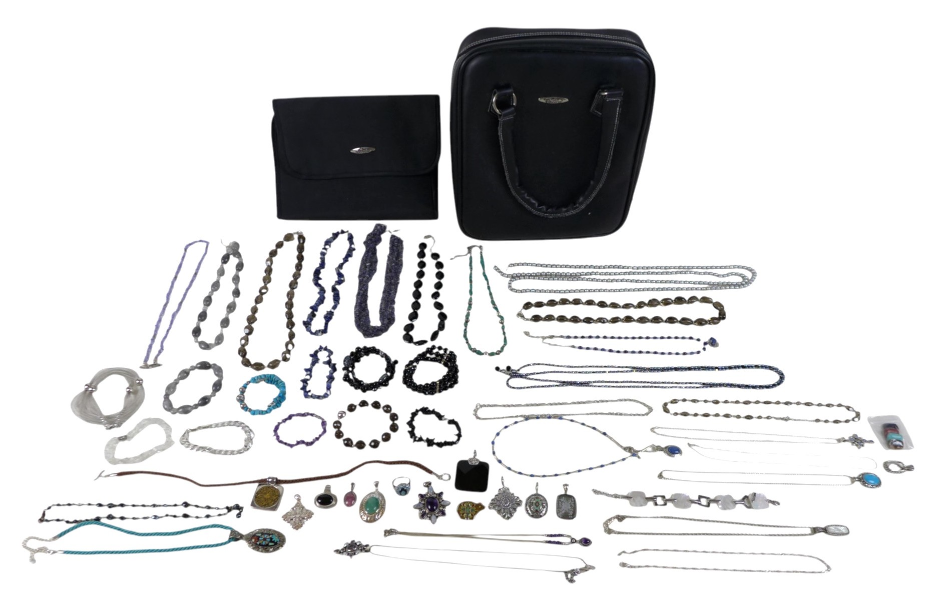 An interesting collection of silver and dress jewellery, including various QVC items, and a PreZerve jewellery carry bag.