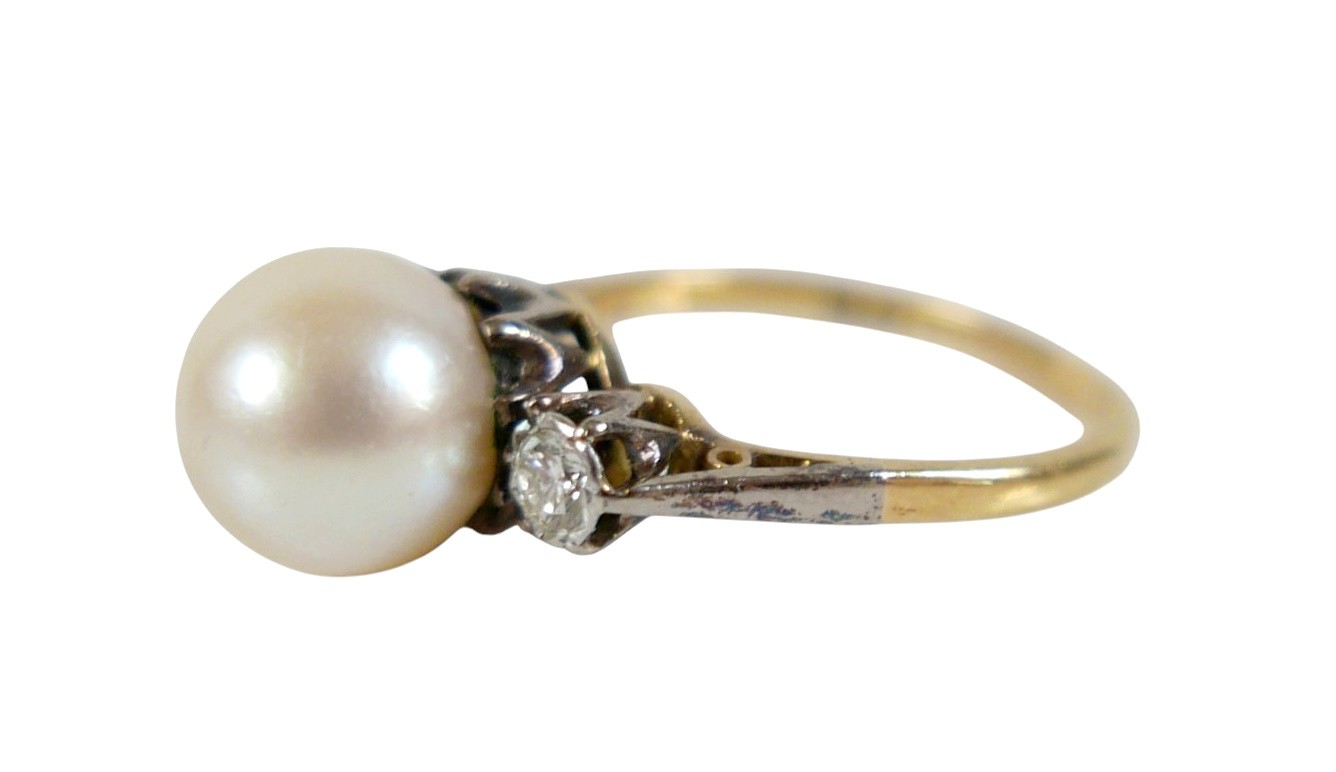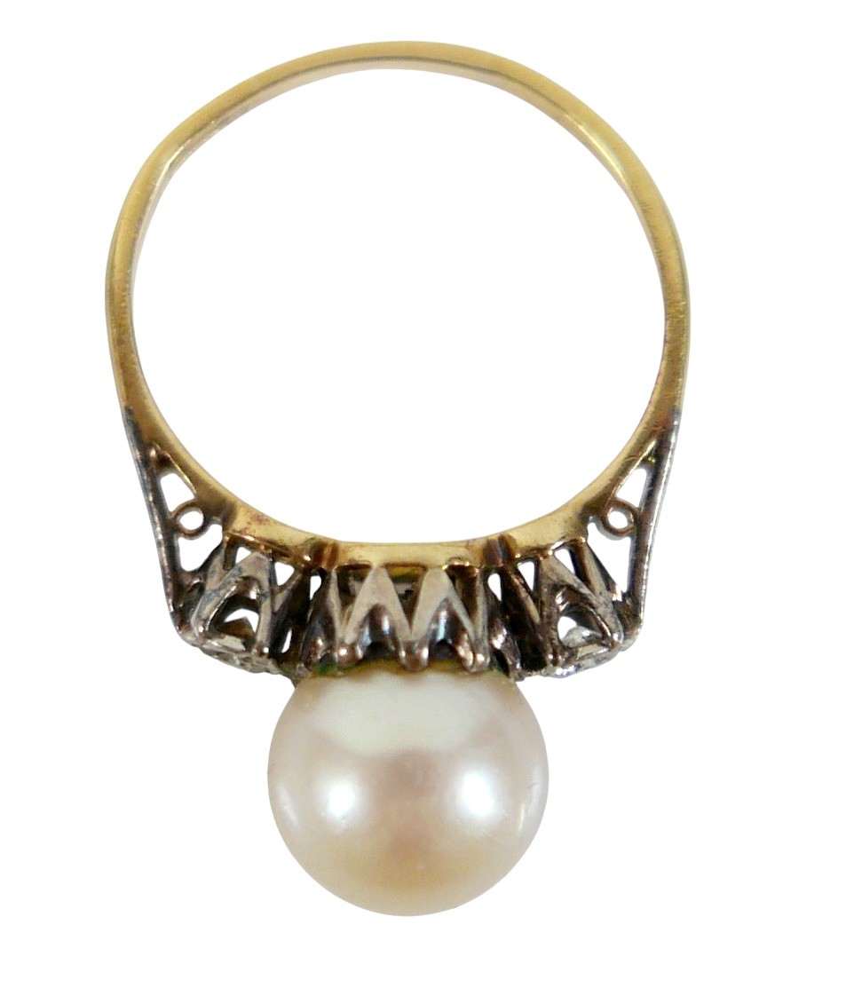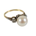 An 18ct yellow gold and platinum pearl and diamond ring the ...