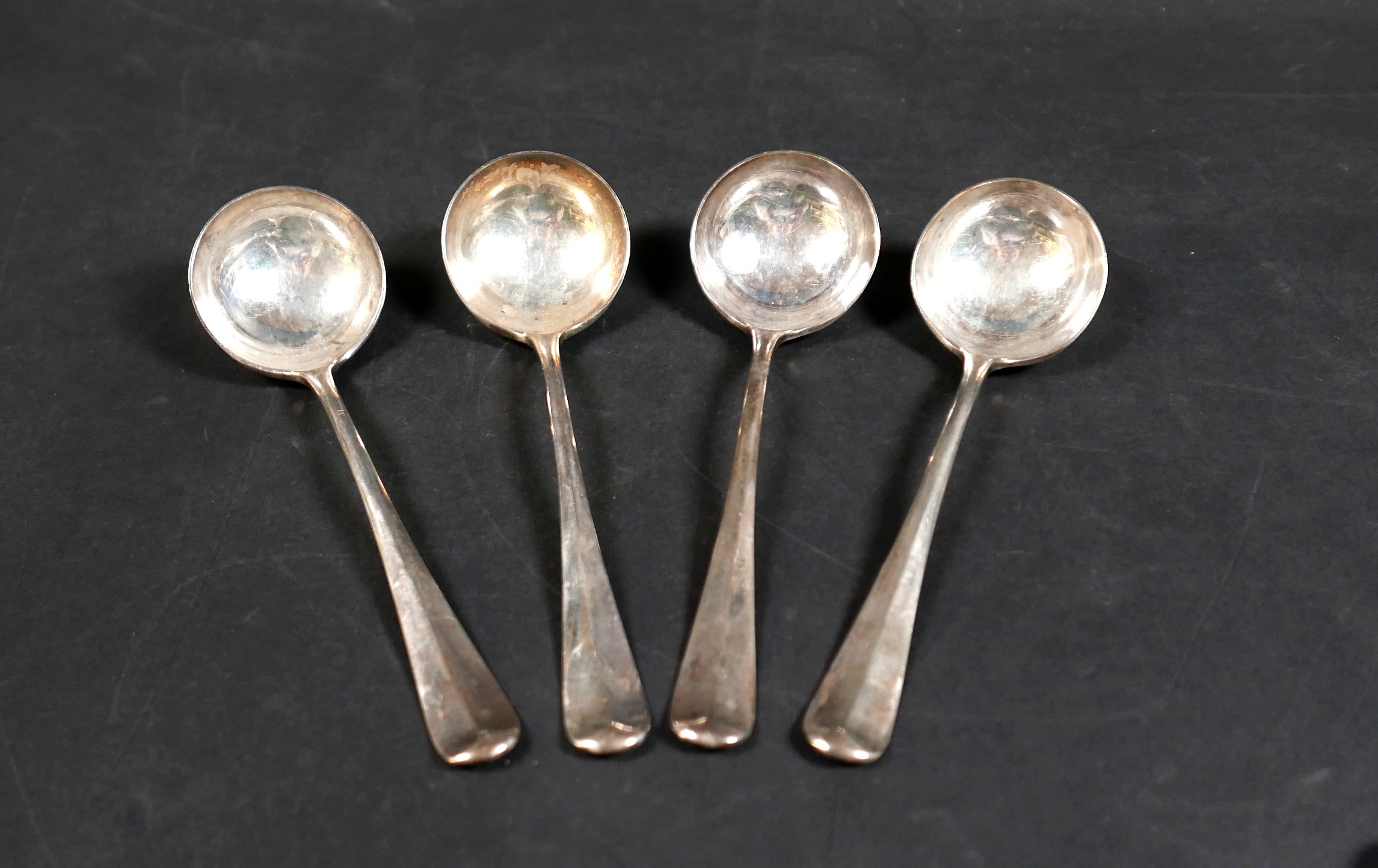 A set of four George VI silver sauce ladles, rat tail patter...