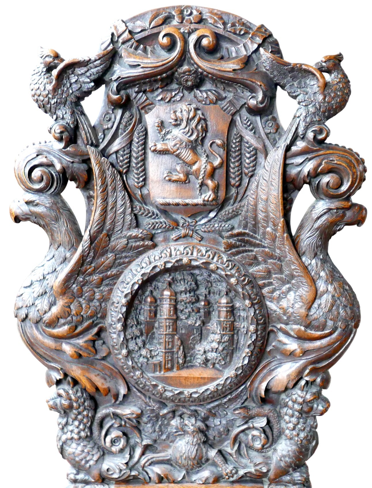 The Burghley Chair: a Victorian heavily carved oak Armorial ...