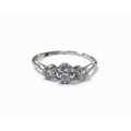 A platinum and diamond three stone ring, the largest central...