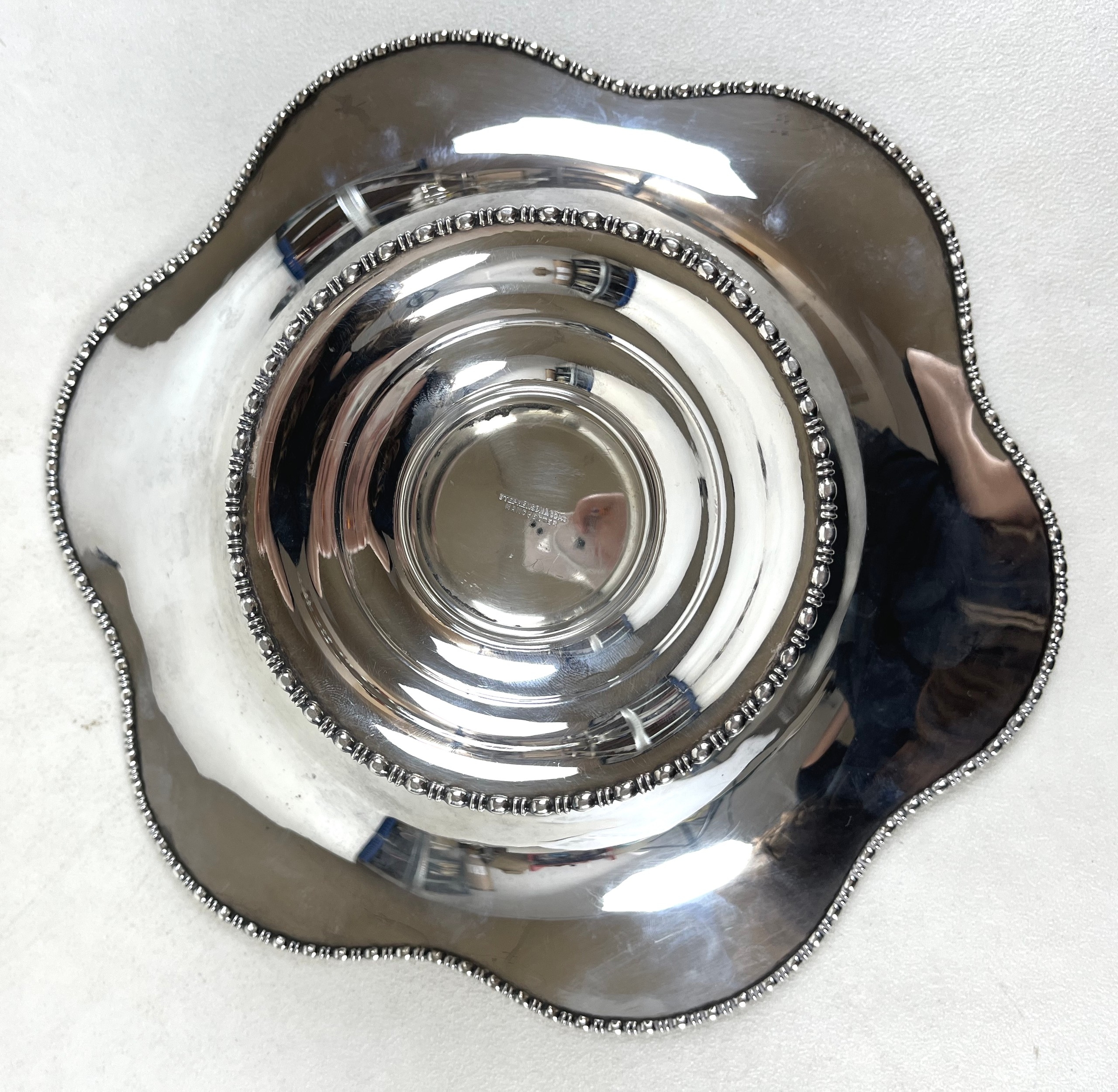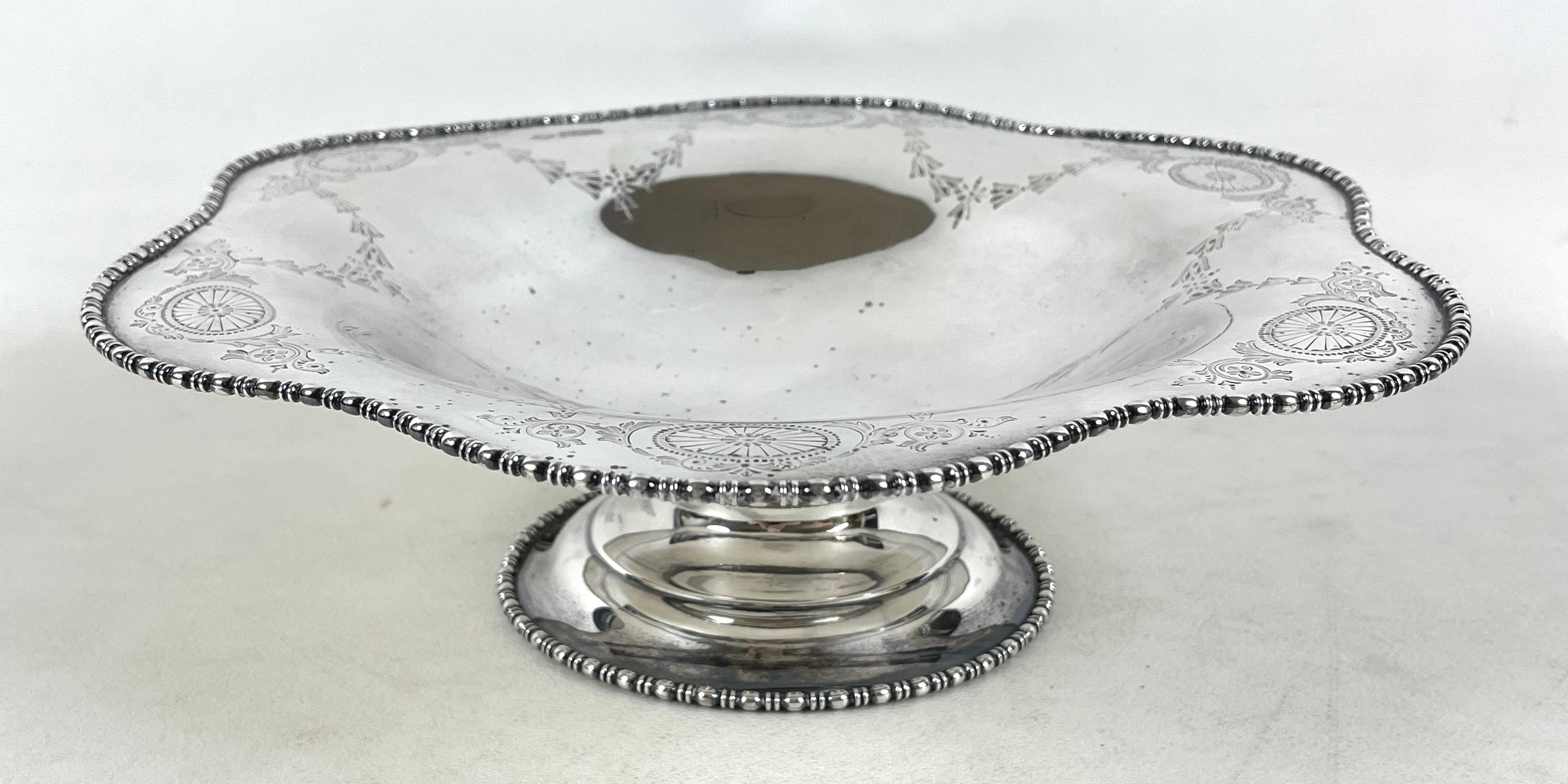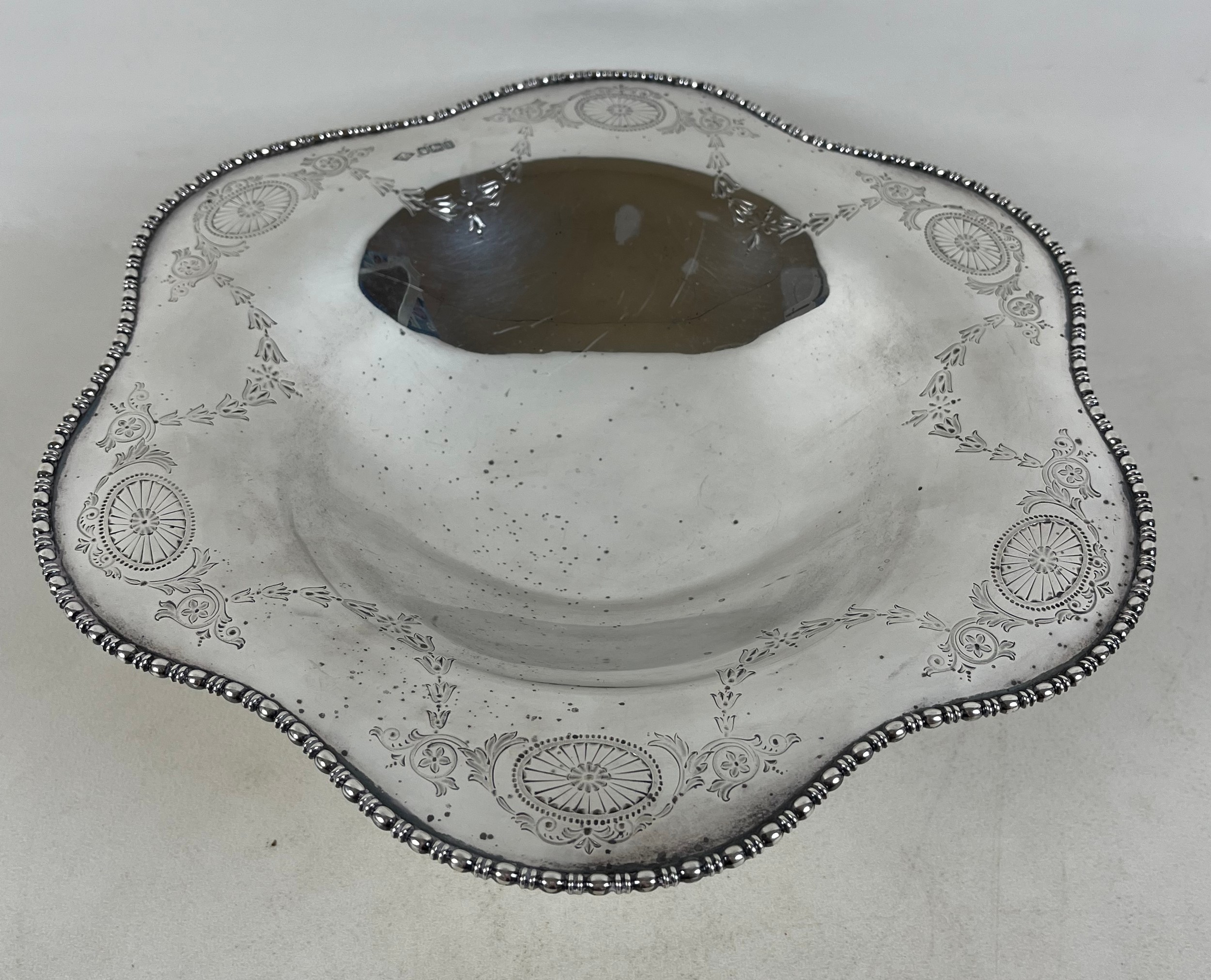 A George V silver footed bowl, with a shaped top engraved with garlands, Stephenson & Sons, Sheffield 1912, 29 by 29 by 8cm high, 19.3toz.