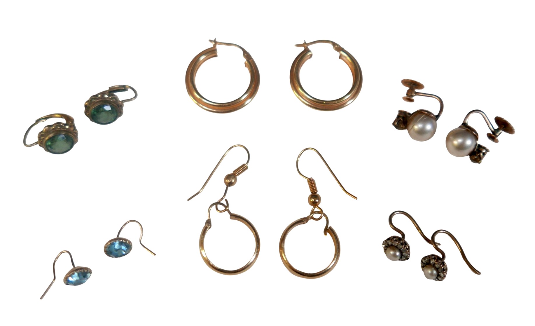 A pair of 9ct gold hoop earrings, 2g, together with five pai...