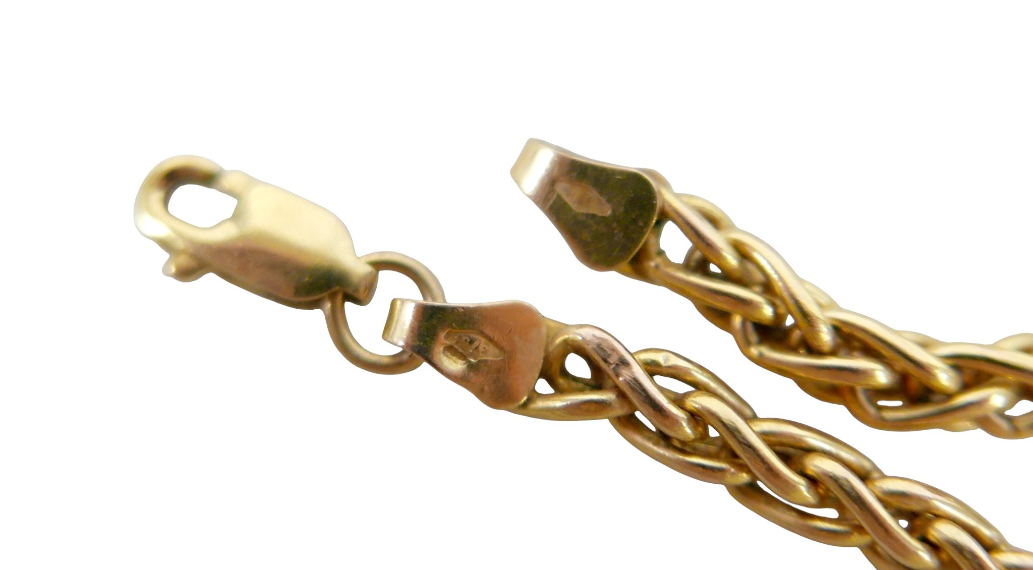 A 9ct yellow gold necklace, spiga links, lobster claw clasp,...
