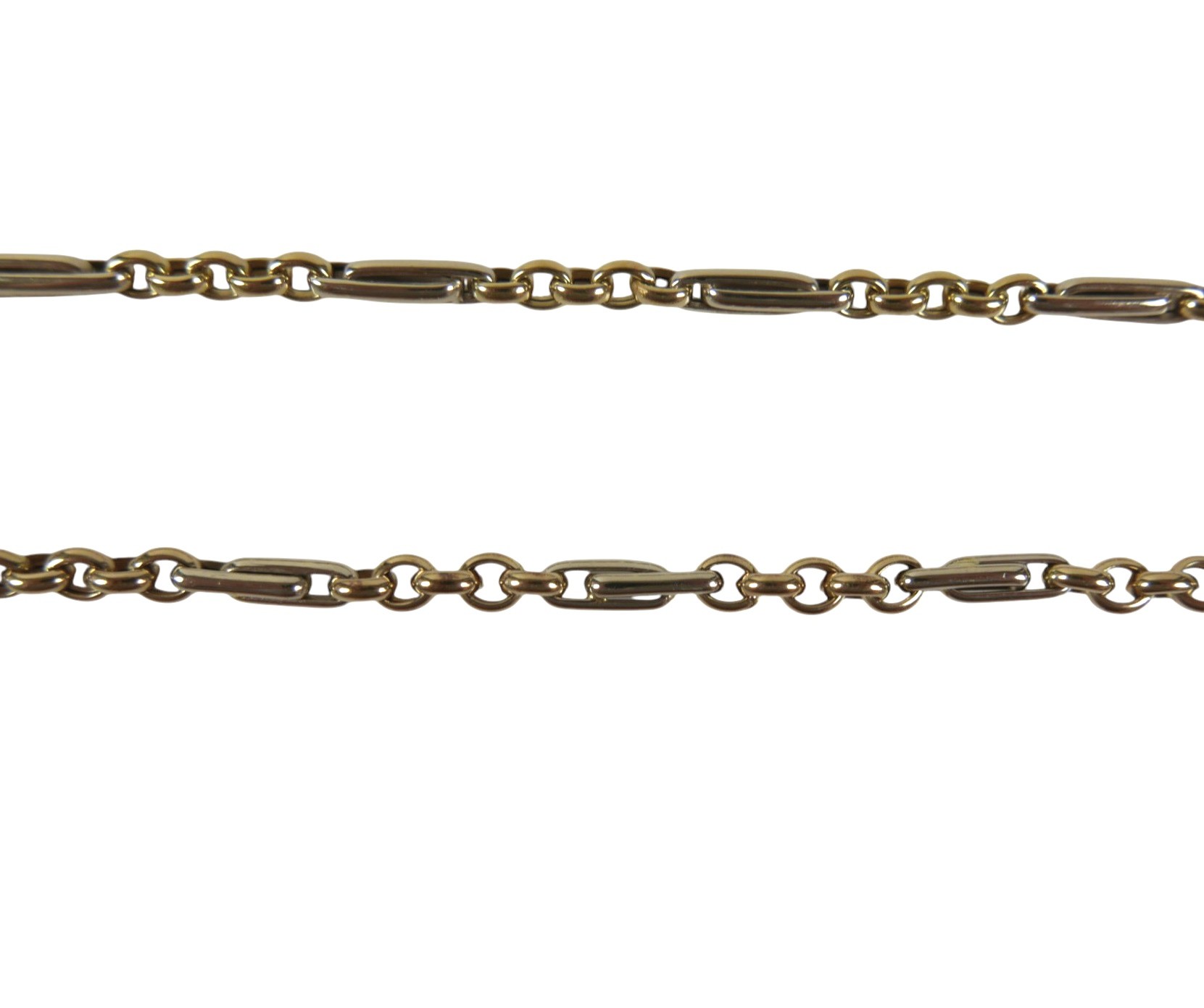 An Italian 18ct bi-colour yellow gold necklace, with figaro pattern rolo links, lobster claw clasp, 4.5mm wide, 79cm long, 36.1g.