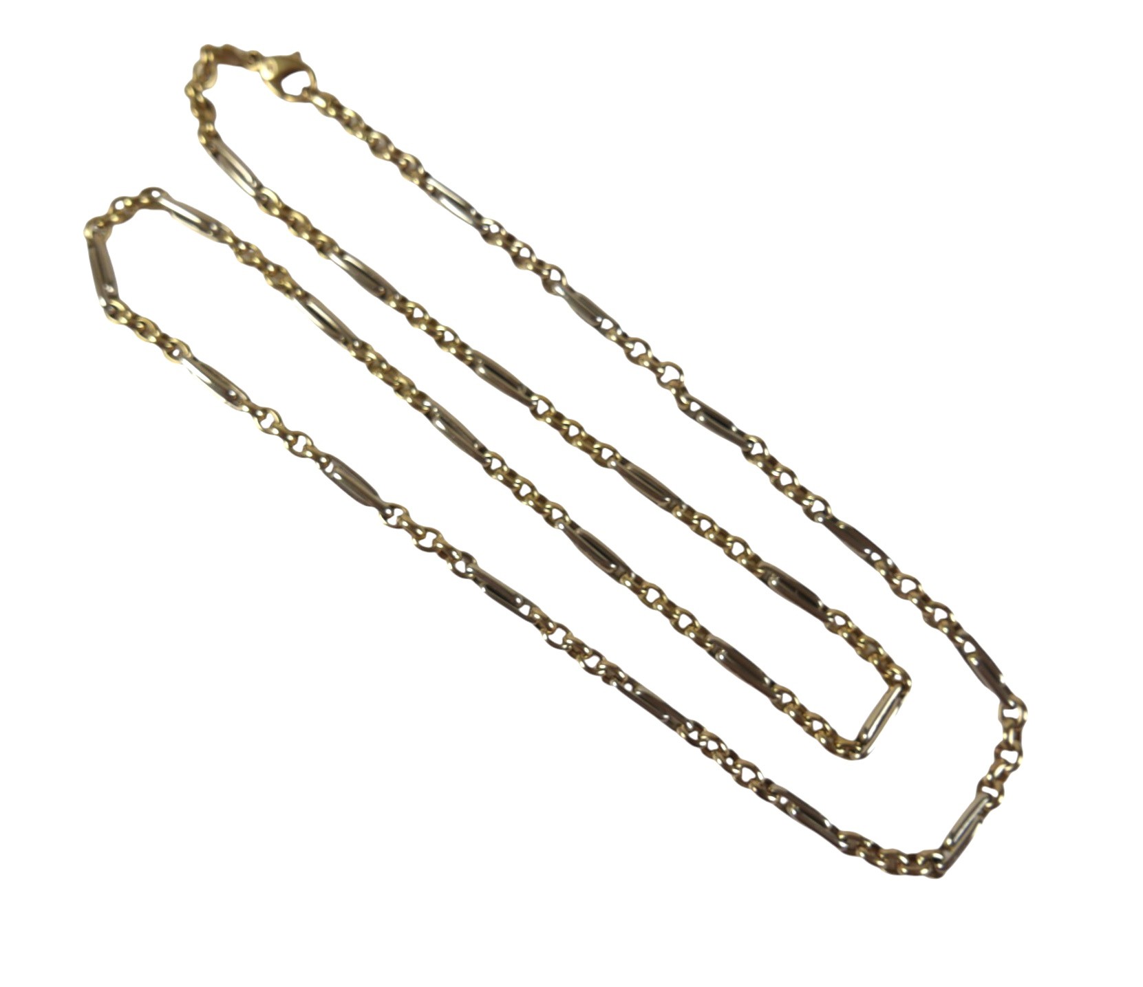 An Italian 18ct bi-colour yellow gold necklace, with figaro ...