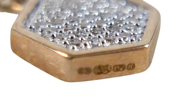 A 9ct yellow gold and diamond set pendant, of hexagonal form...