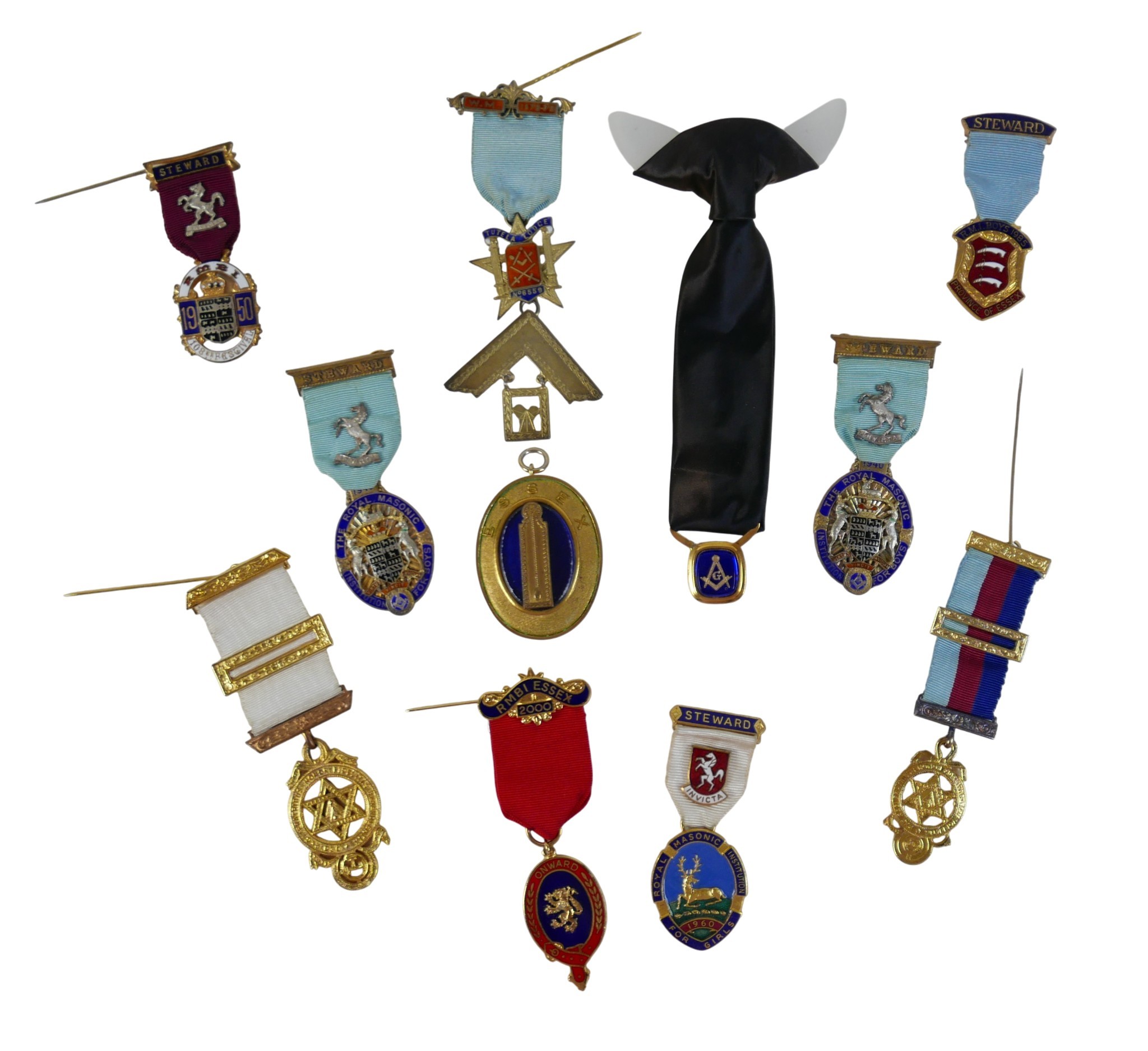 A collection of eleven masonic jewels including three silver...