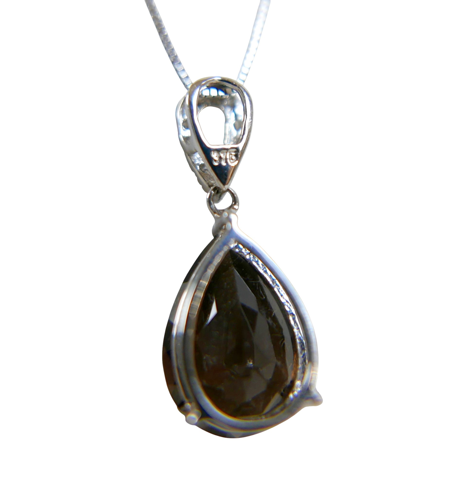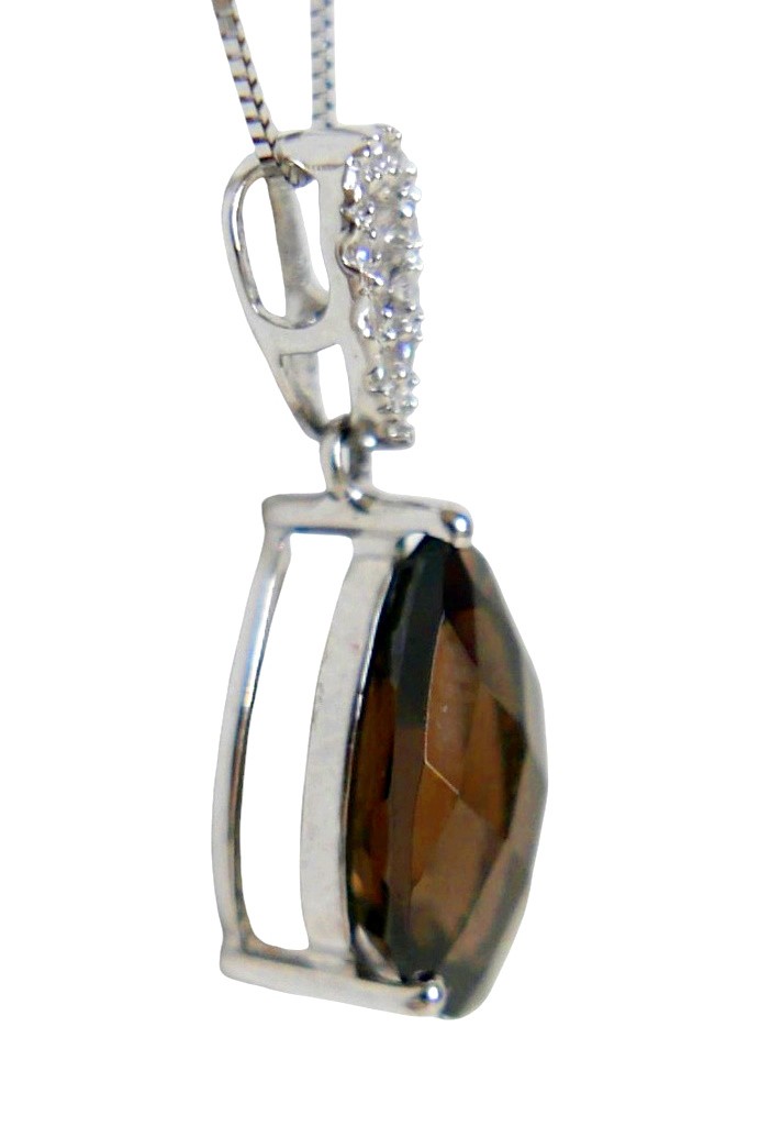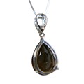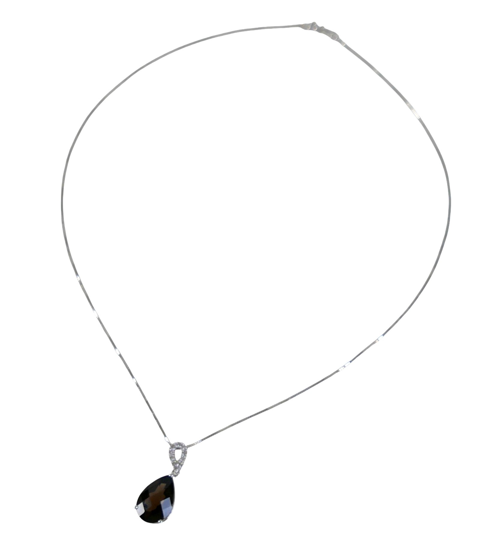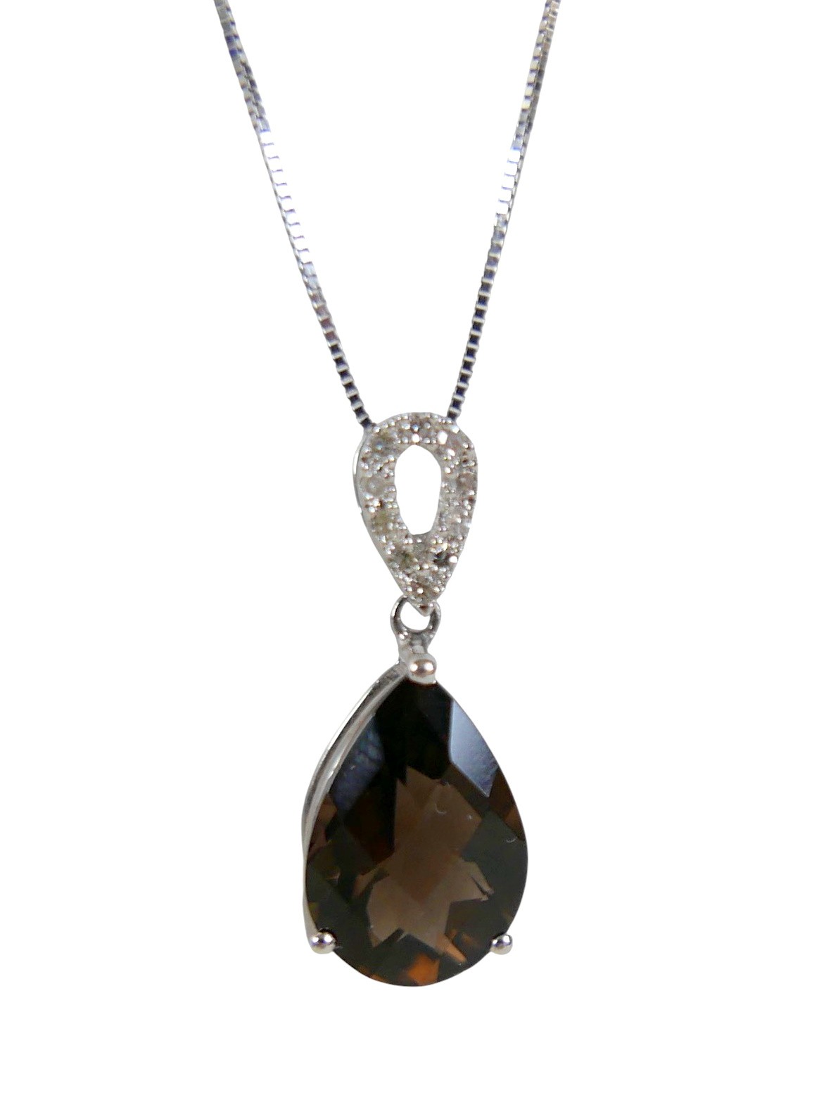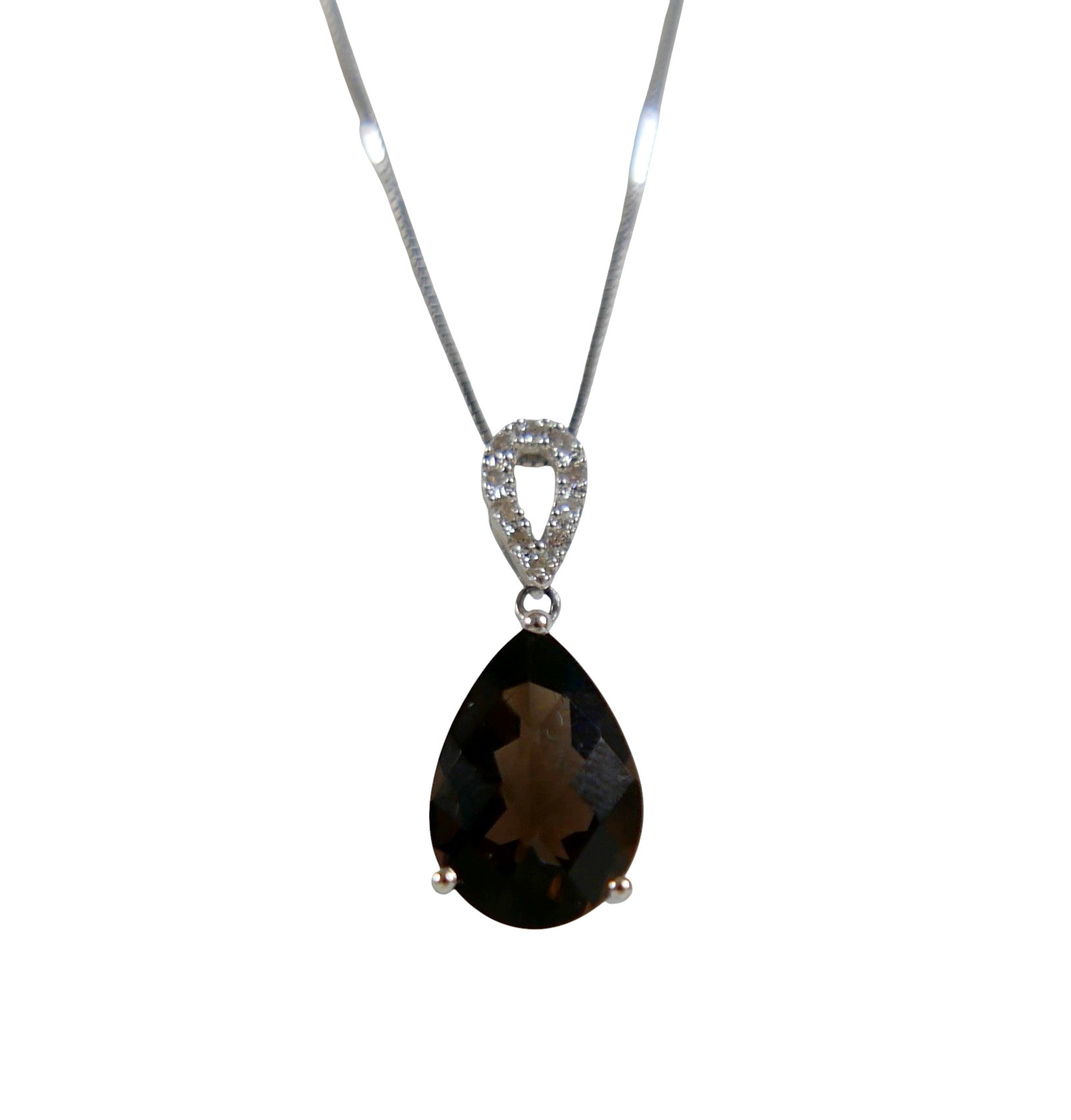 A 9ct white gold smokey quartz and diamond tear drop pendant...