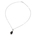 A 9ct white gold smokey quartz and diamond tear drop pendant on a fine chain, pendant 31mm high, chain 40cm long, total weight 2.6g.