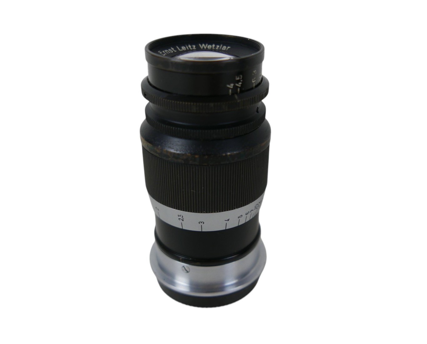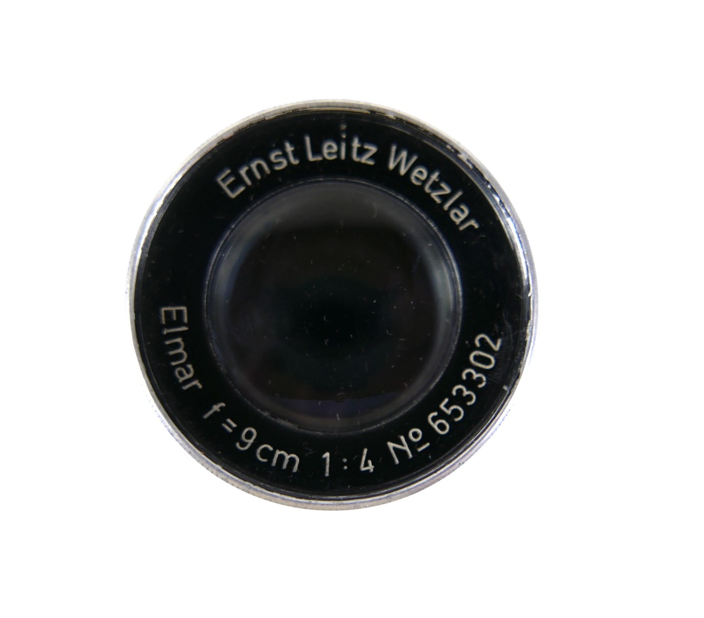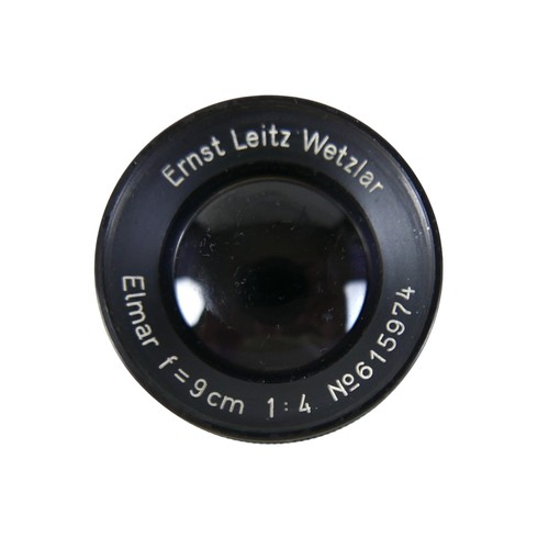 Three Ernst Leitz Wetzlar camera lens Elmar f=9cm 1:4 no 653...