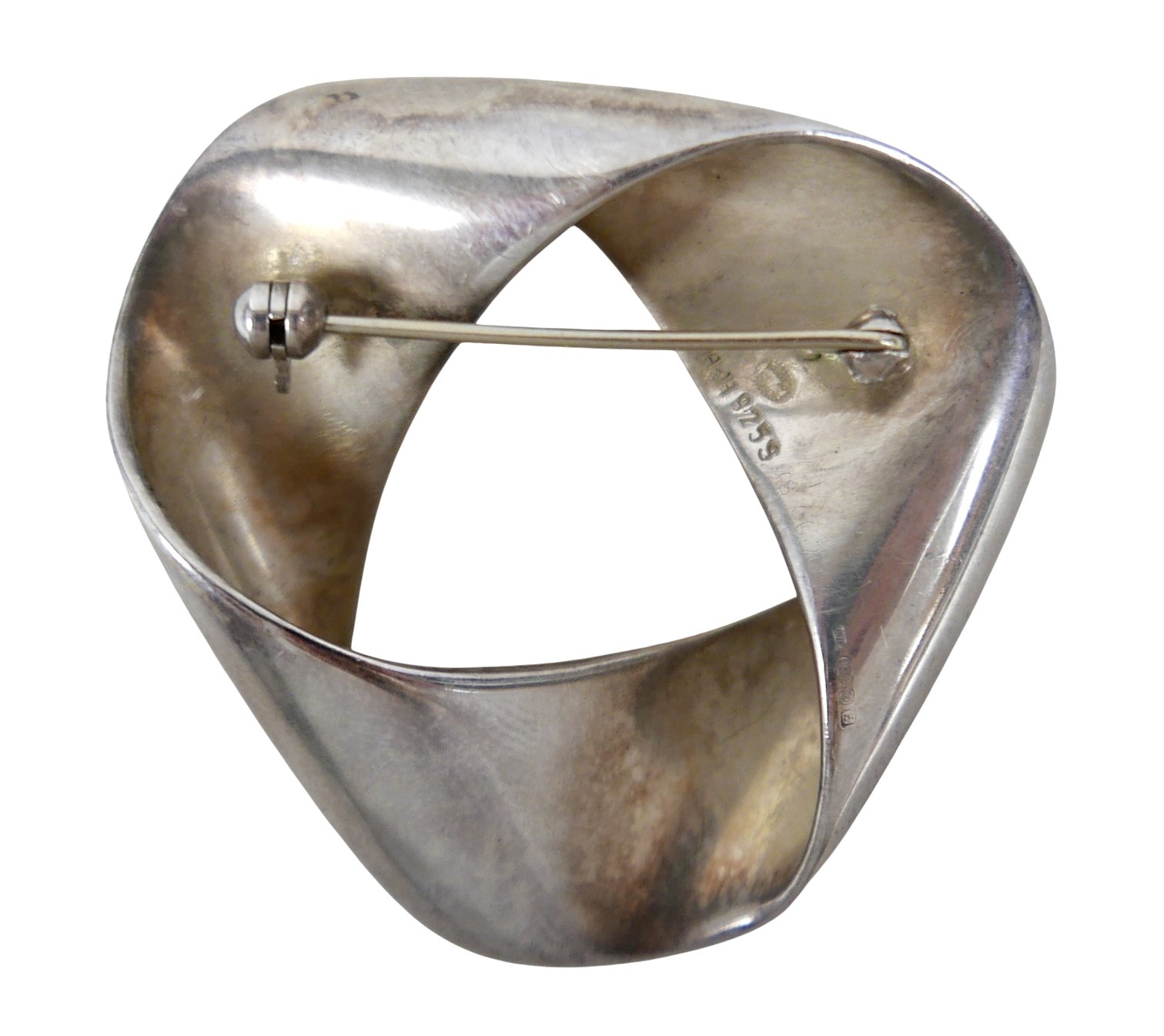 A Georg Jensen silver triangular form brooch, 1.01toz.