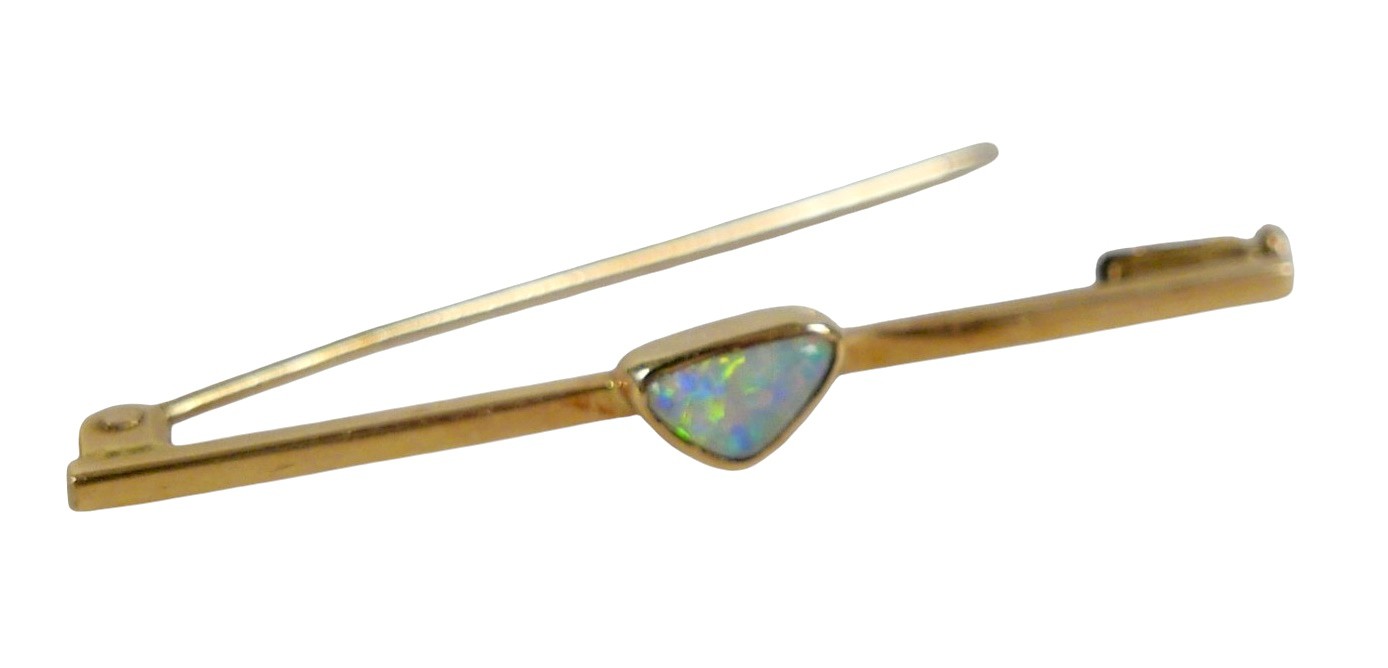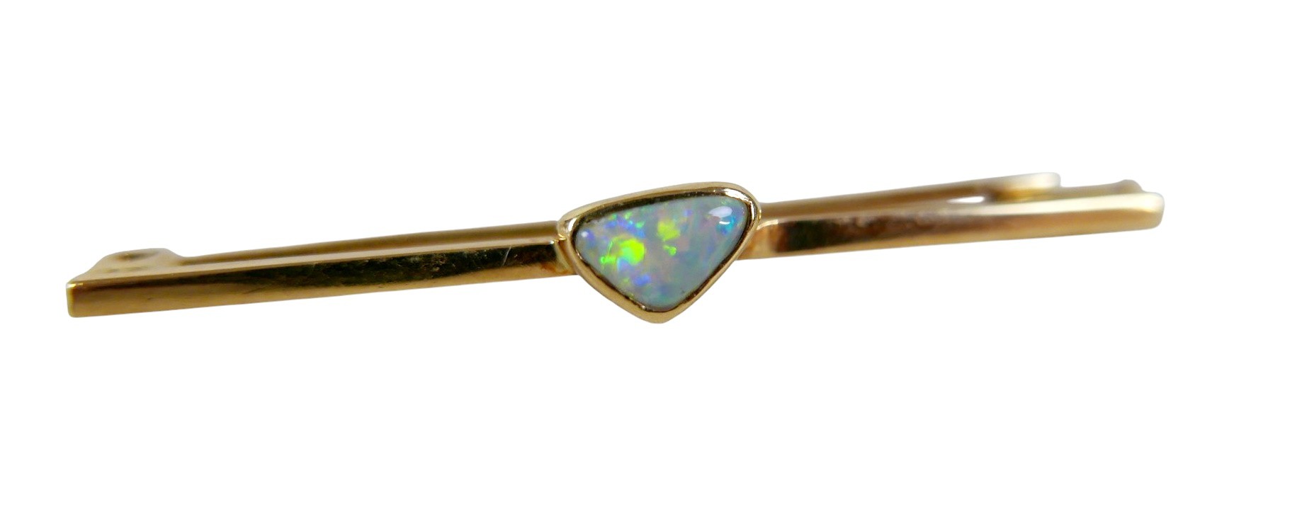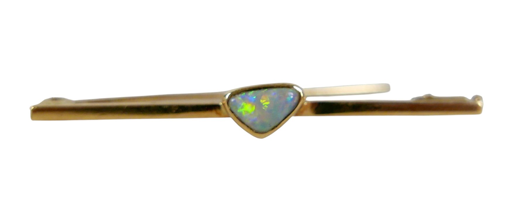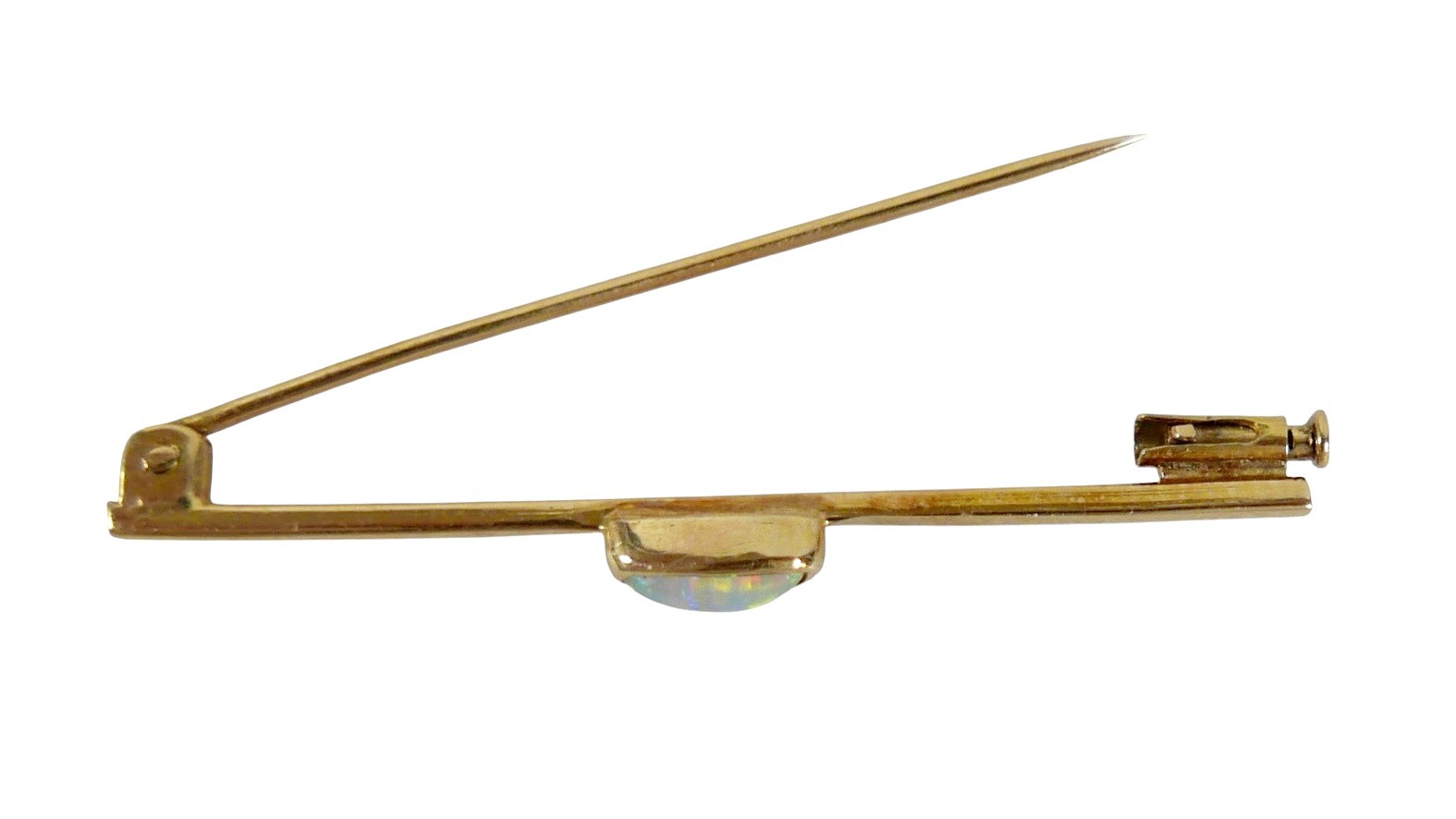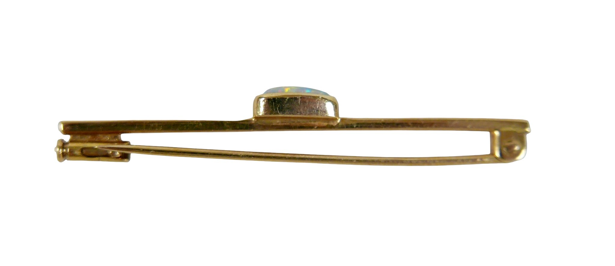 A yellow metal opal bar brooch, 4.5cm wide, 2.7g.