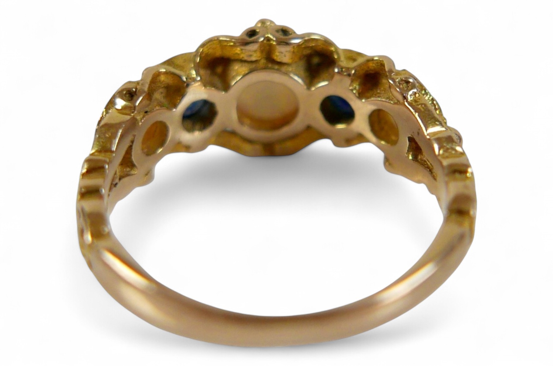 A 9ct yellow gold opal and sapphire five stone ring head wid...