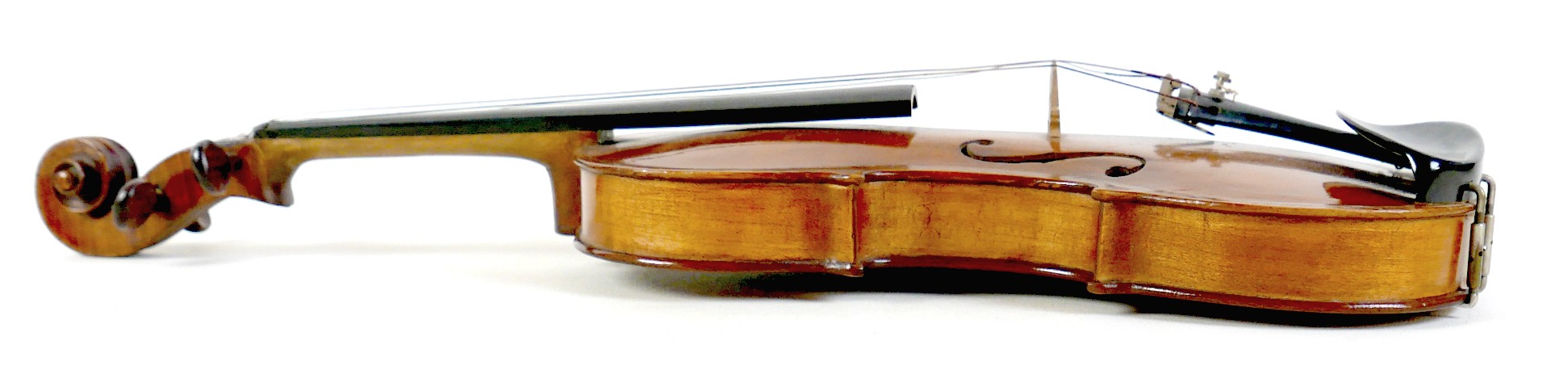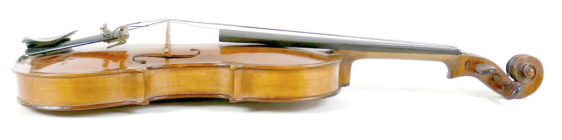 An early 20th century Continental violin, bearing label 'Januarius Gagliano filius Alexandri fecit Neap. 1768', with two dots to the top and base of its 14 inch, two piece back.