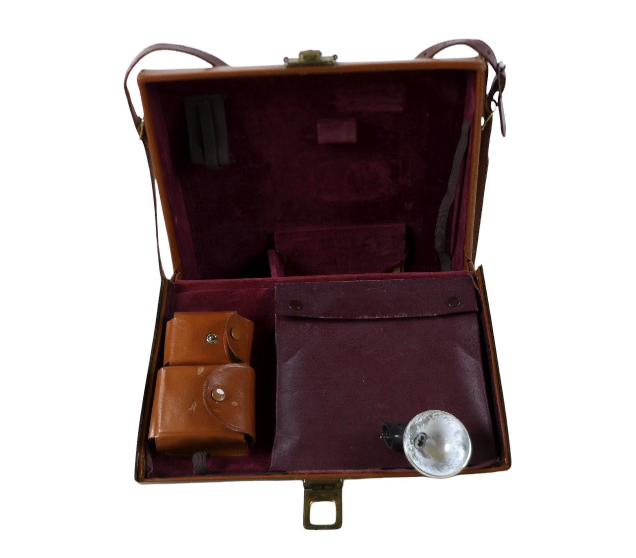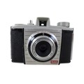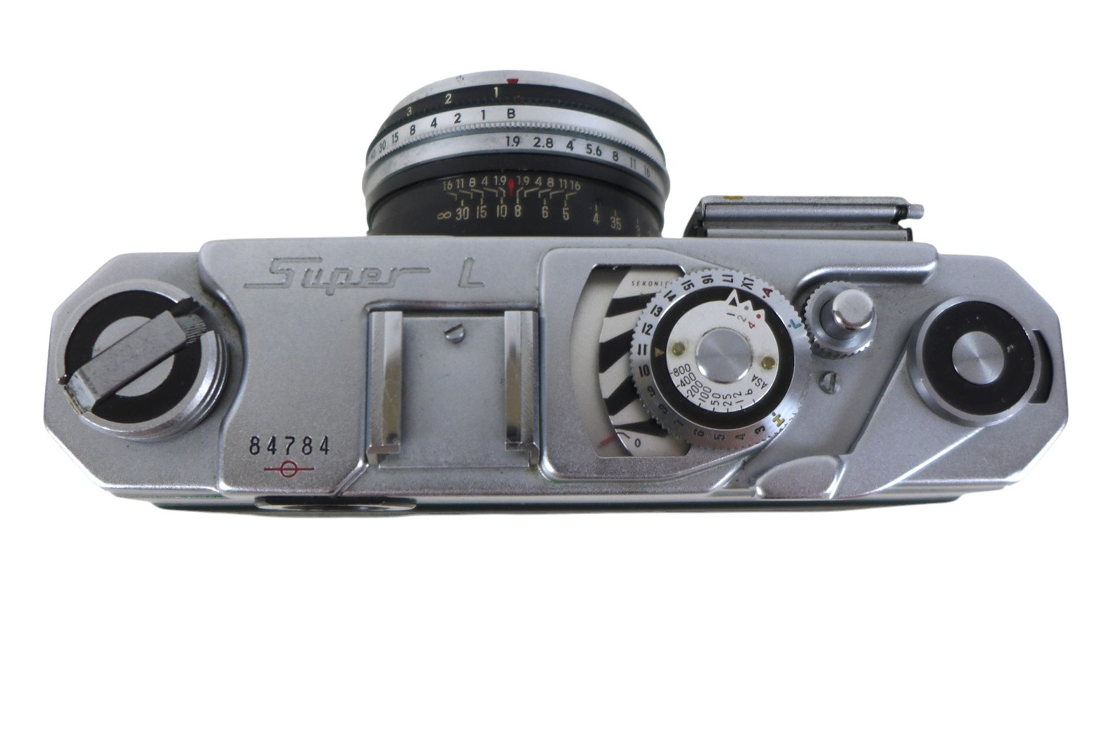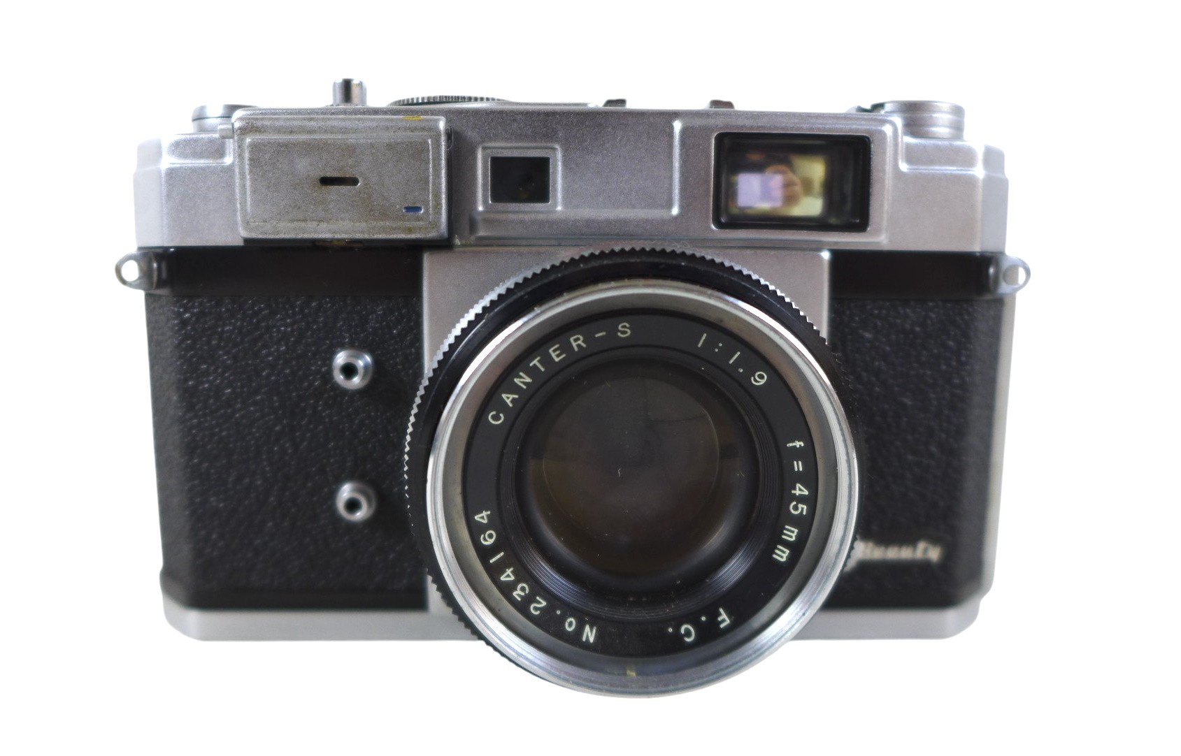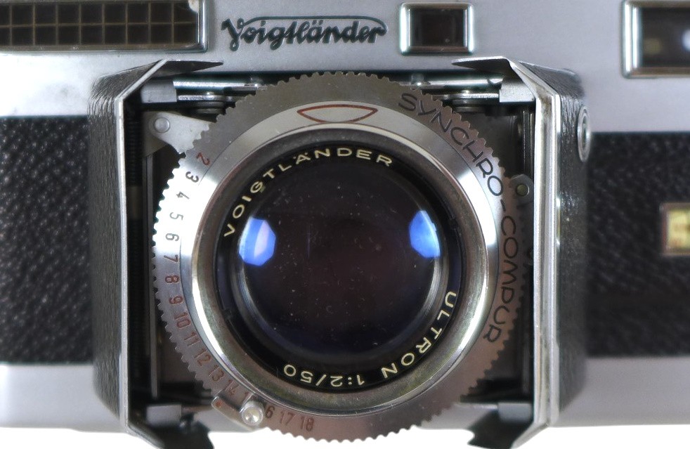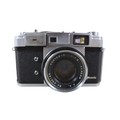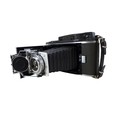 A collection of nine vintage cameras comprising a Polaroid land camera, Voigtlander Vito B and Prominent, Corfield perplex body, Beauty Super L, Voigtlander Vitessa, Nikkormat body, Colorsnap Bantam, and a Zeiss Ikon.(9)