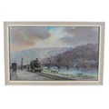 Roy Stringfellow: pastel drawing of a railway with GWR loco No. 4574 by river and bridge, signed lower right, 36 by 60cm, framed.