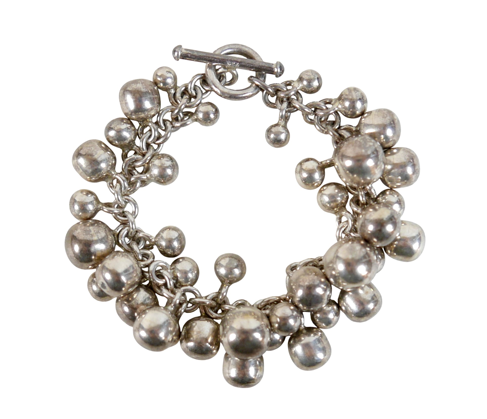 A sterling 925 silver bracelet, with bauble design pendants,...