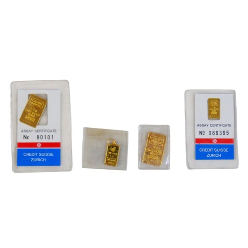 Four yellow gold ingots of 999.9 fine gold comprising 5g, 2....