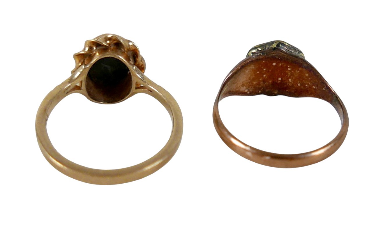Two 9ct yellow gold rings both size M, total weight 4.7g.(2)