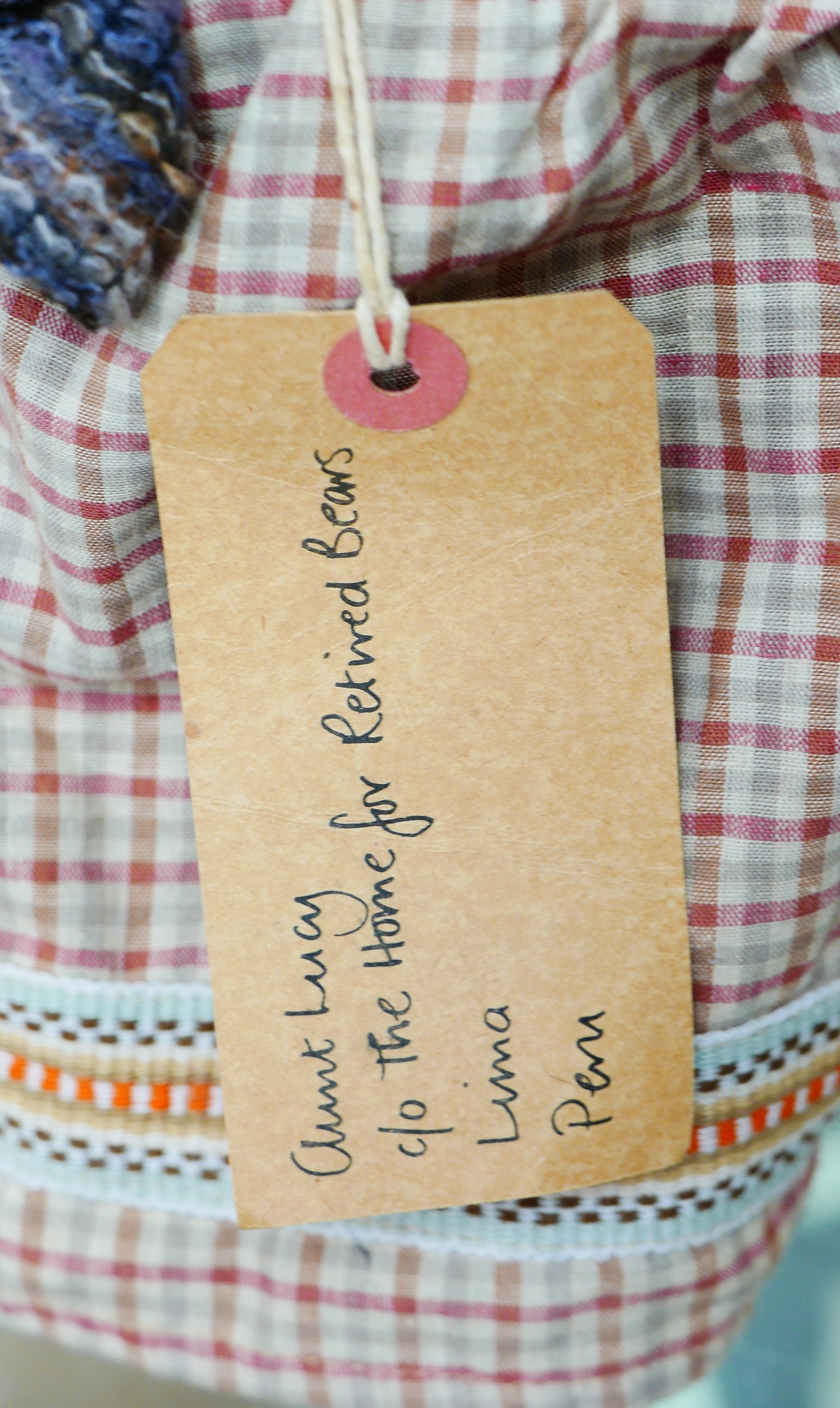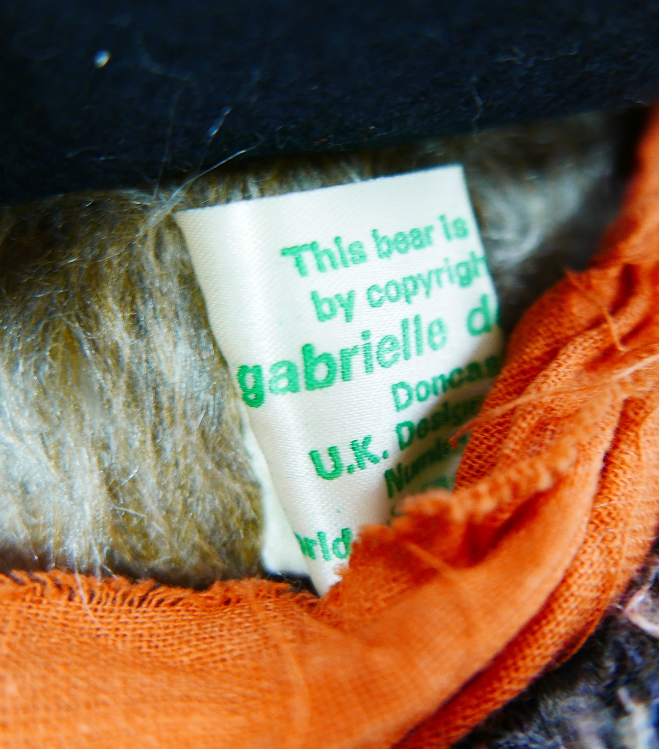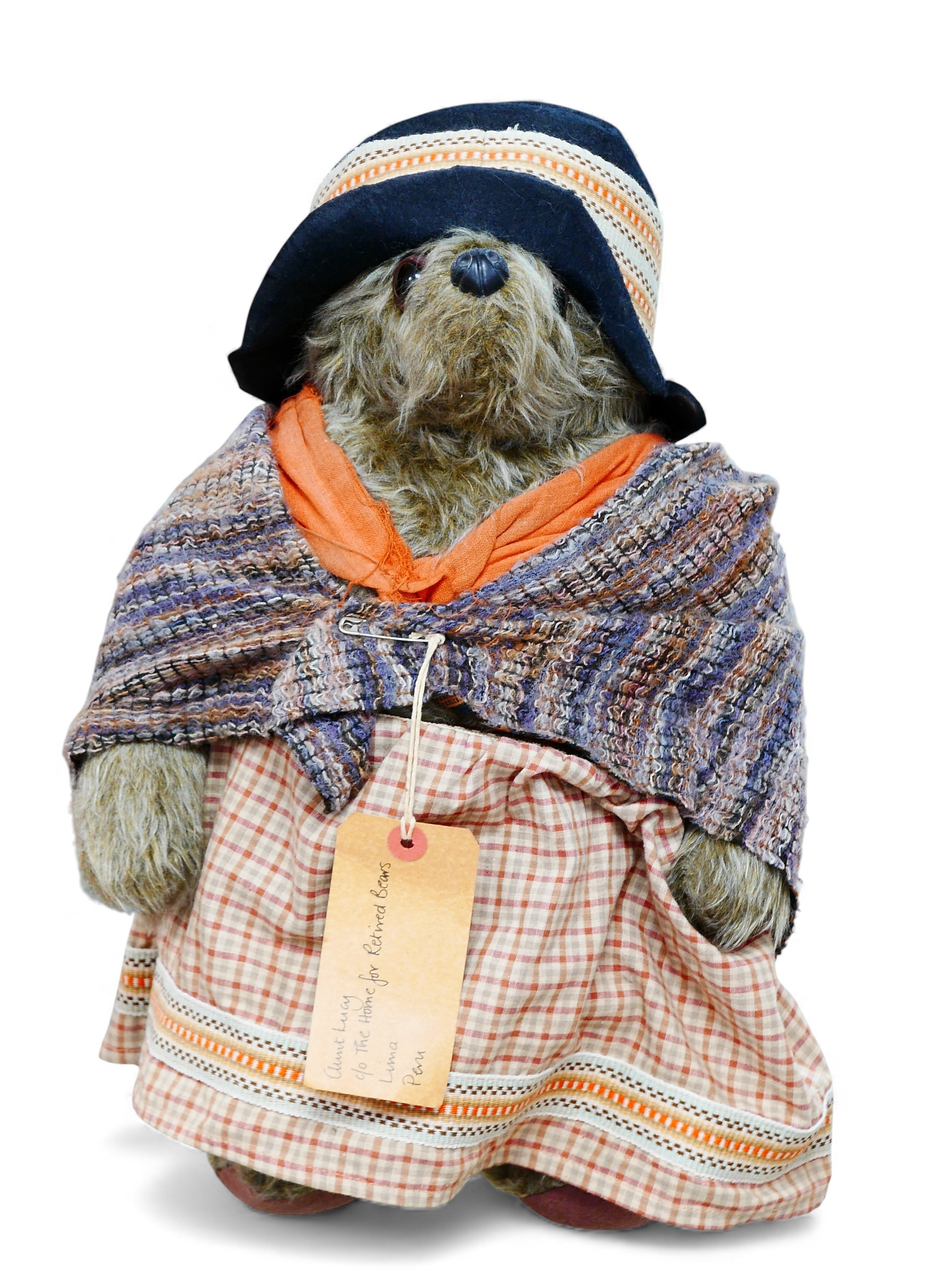 A Gabrielle Designs Aunt Lucy teddy bear, with hat, shawl, skirt and swing tag, 45cm high.