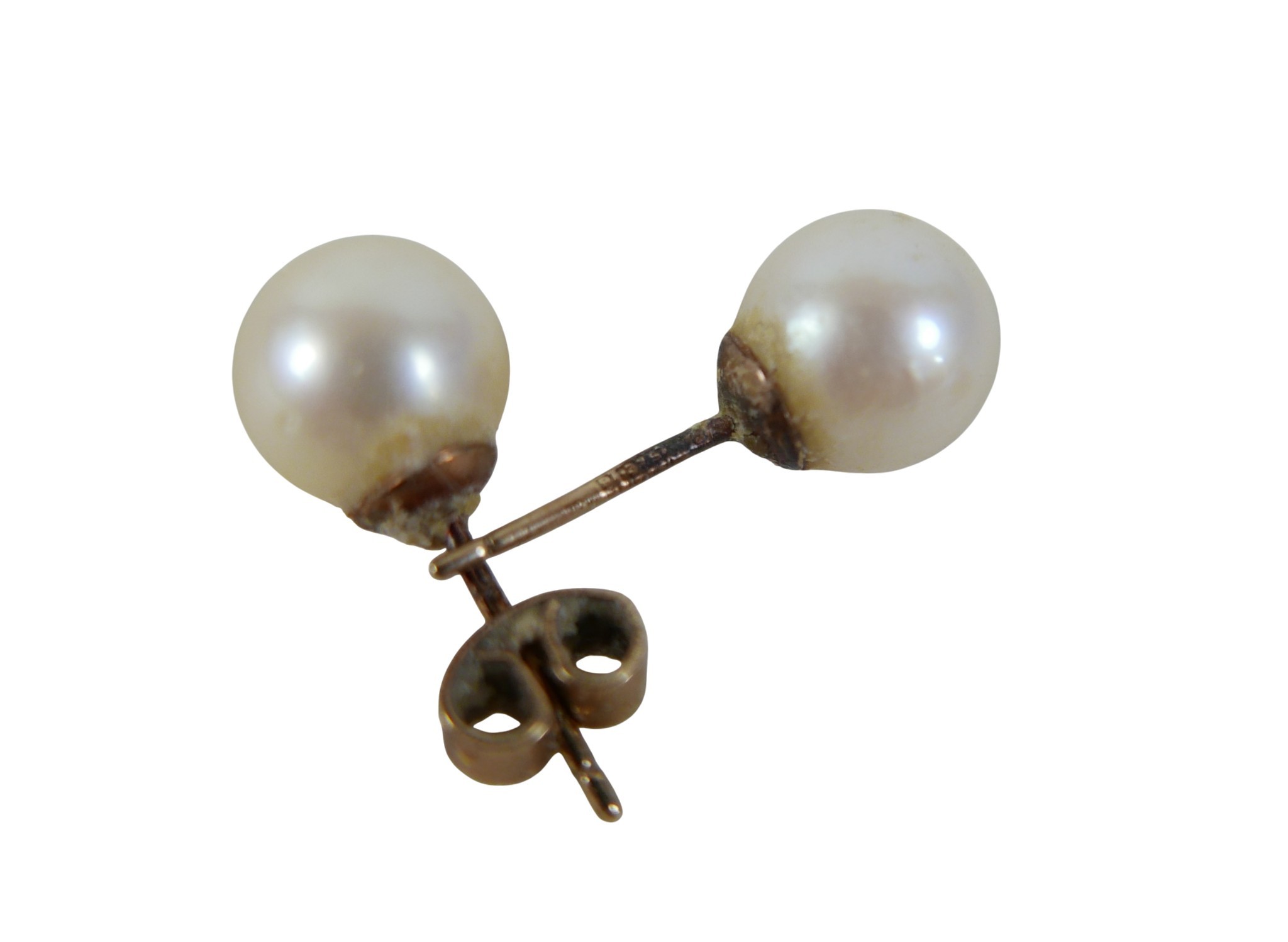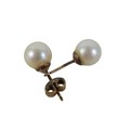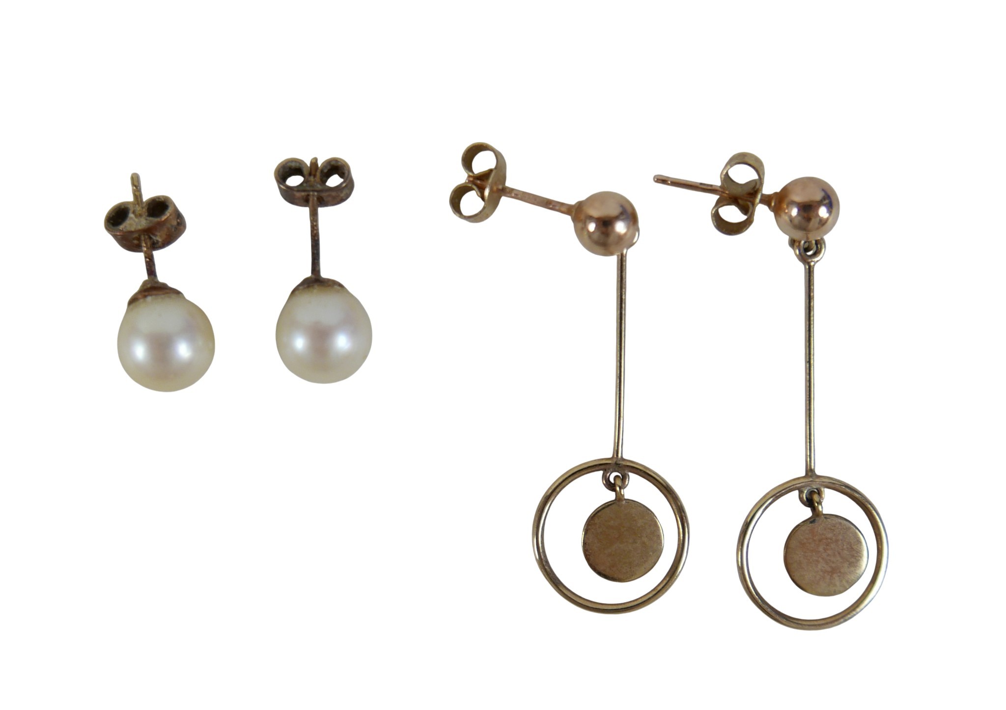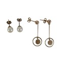 Two pairs of 9ct gold earrings, comprising a pair of drop earrings, 2.6g, together with a pair of single pearl stud earrings, 1.8g. (1 bag)