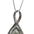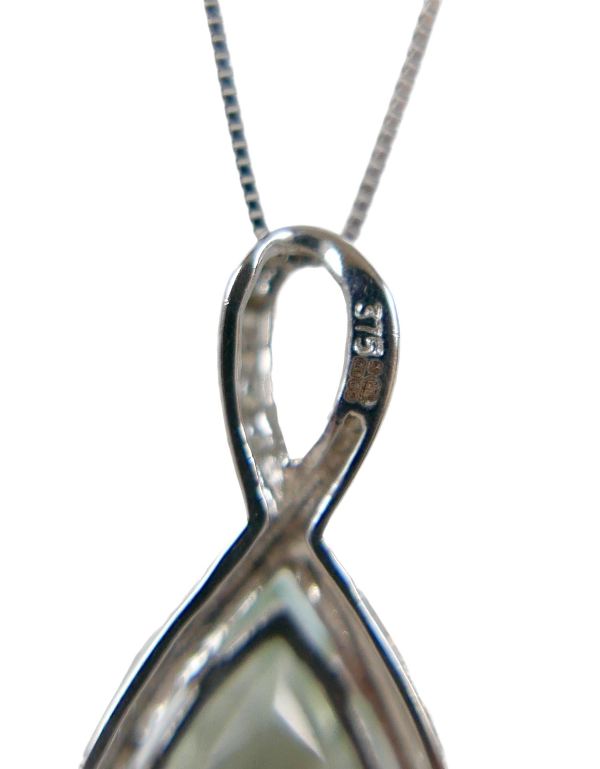 A 9ct white gold tear drop pendant on a fine chain, pendant ...
