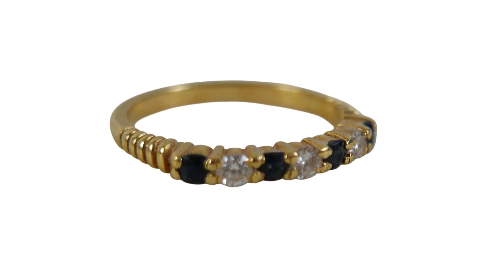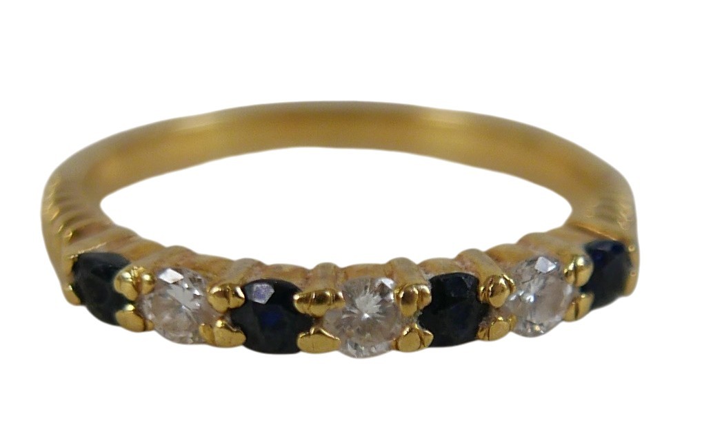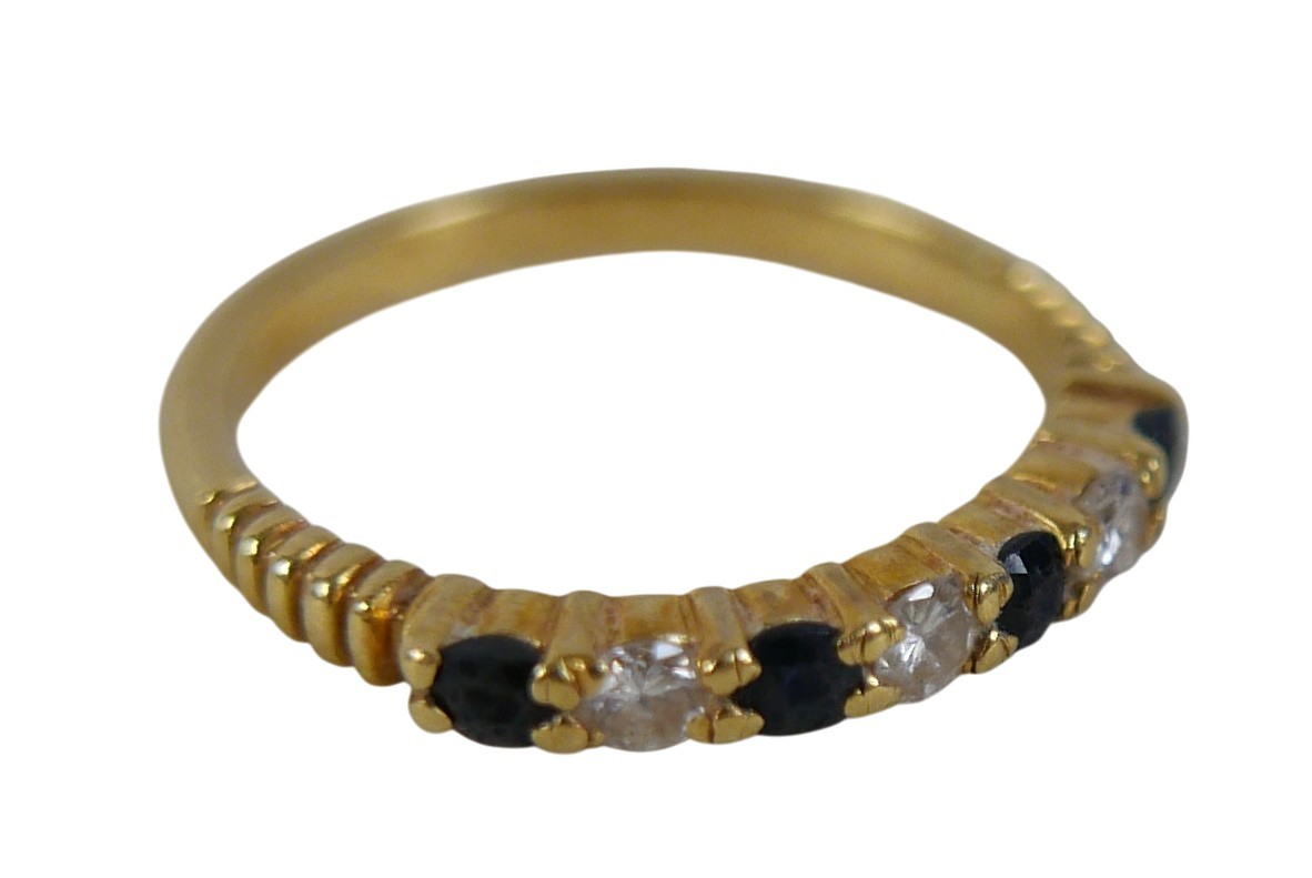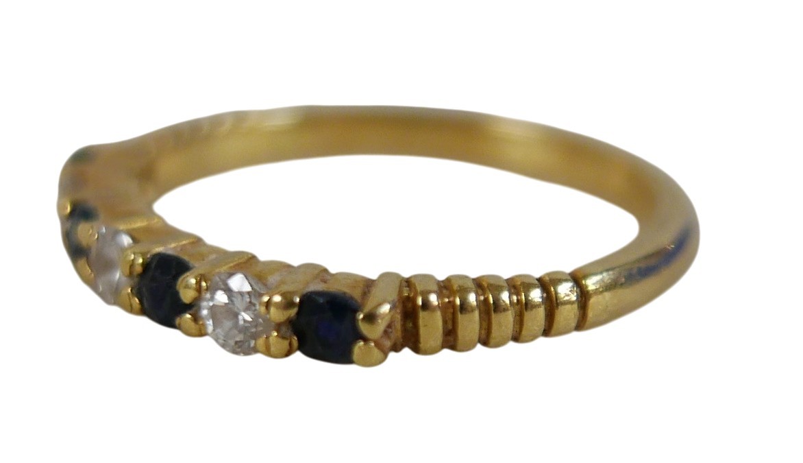 An 18ct gold diamond and sapphire ring, size N, 2.8g.
