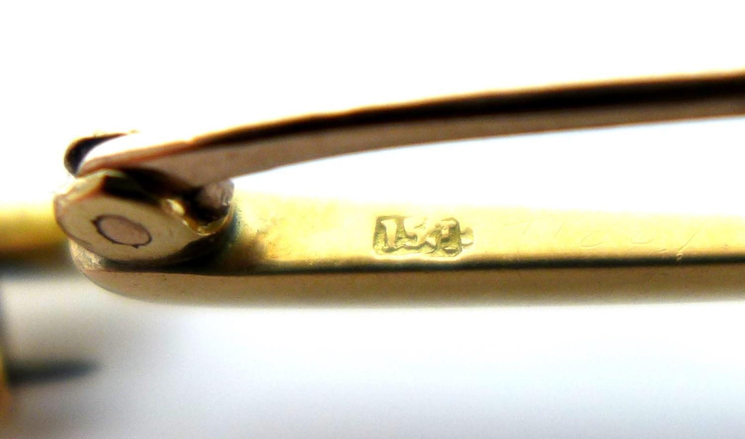 A group of five bar brooches, comprising a 15ct gold and aqu...