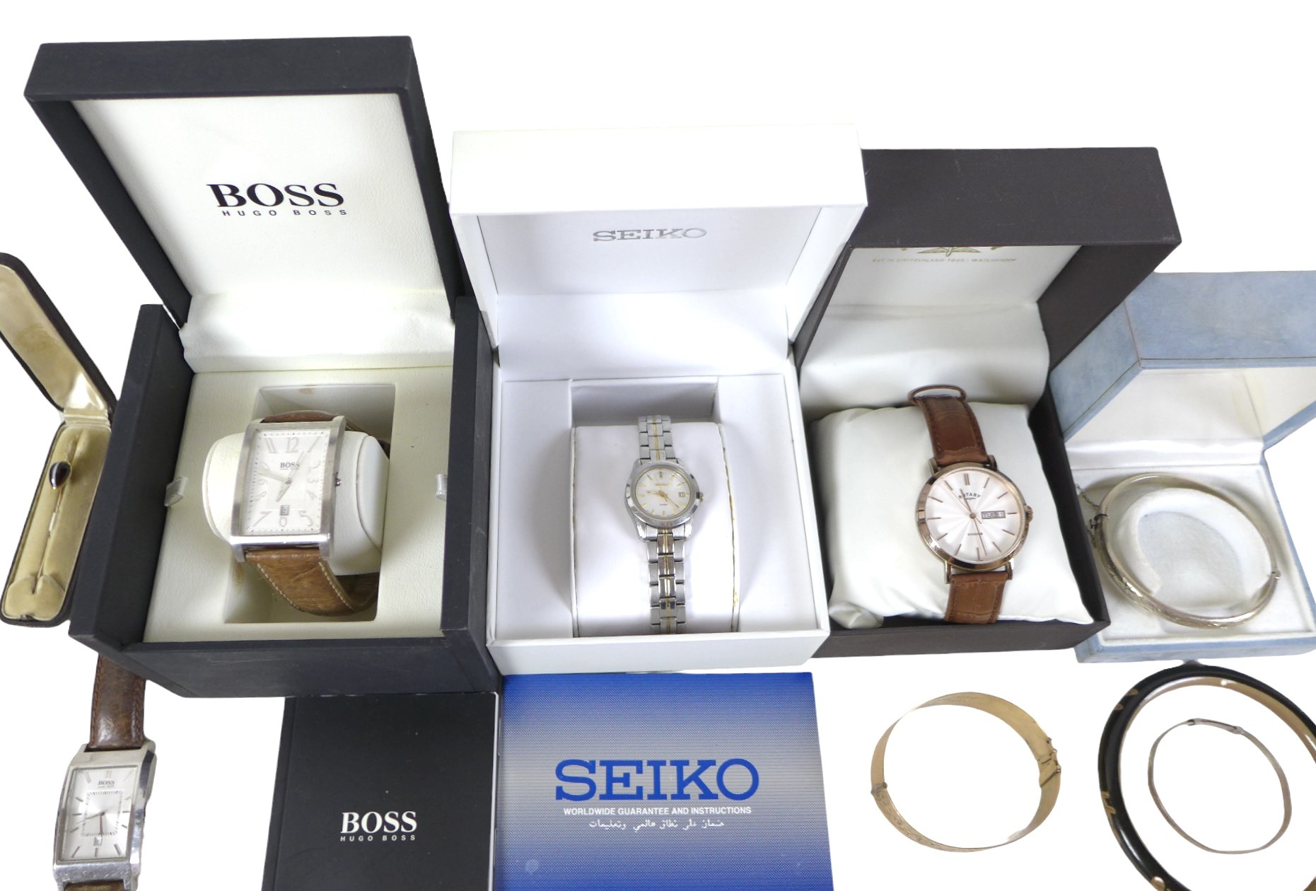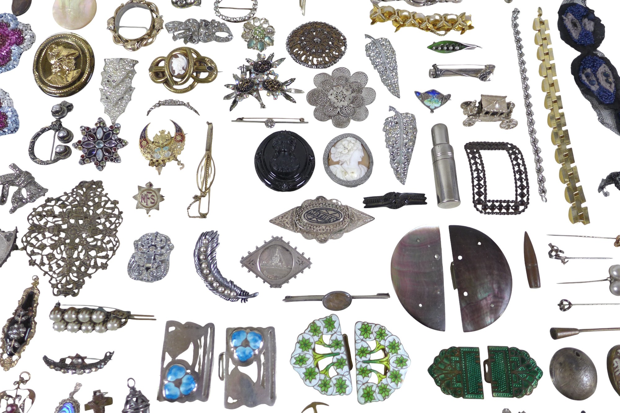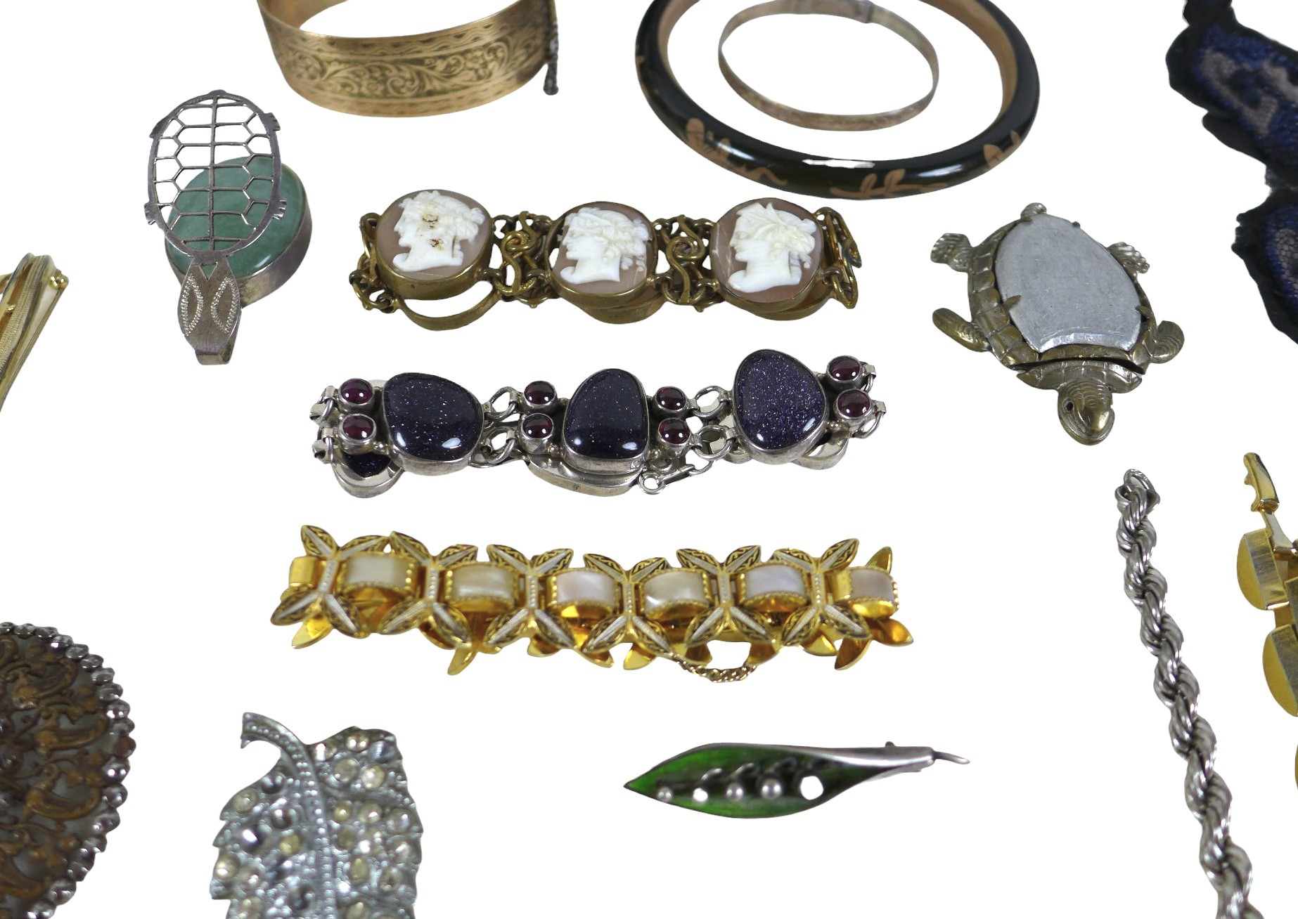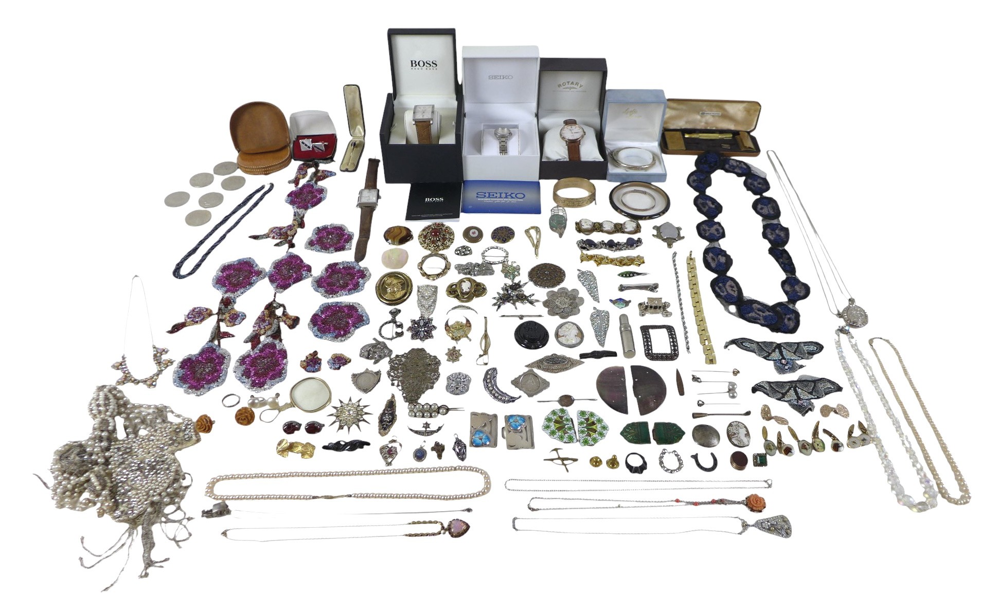 A collection of assorted silver and dress jewellery includin...