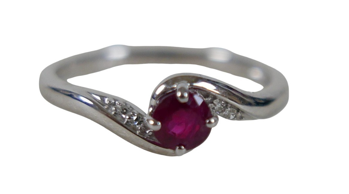 A 9ct white gold tanzanite and diamond ring size O, 2.0g.