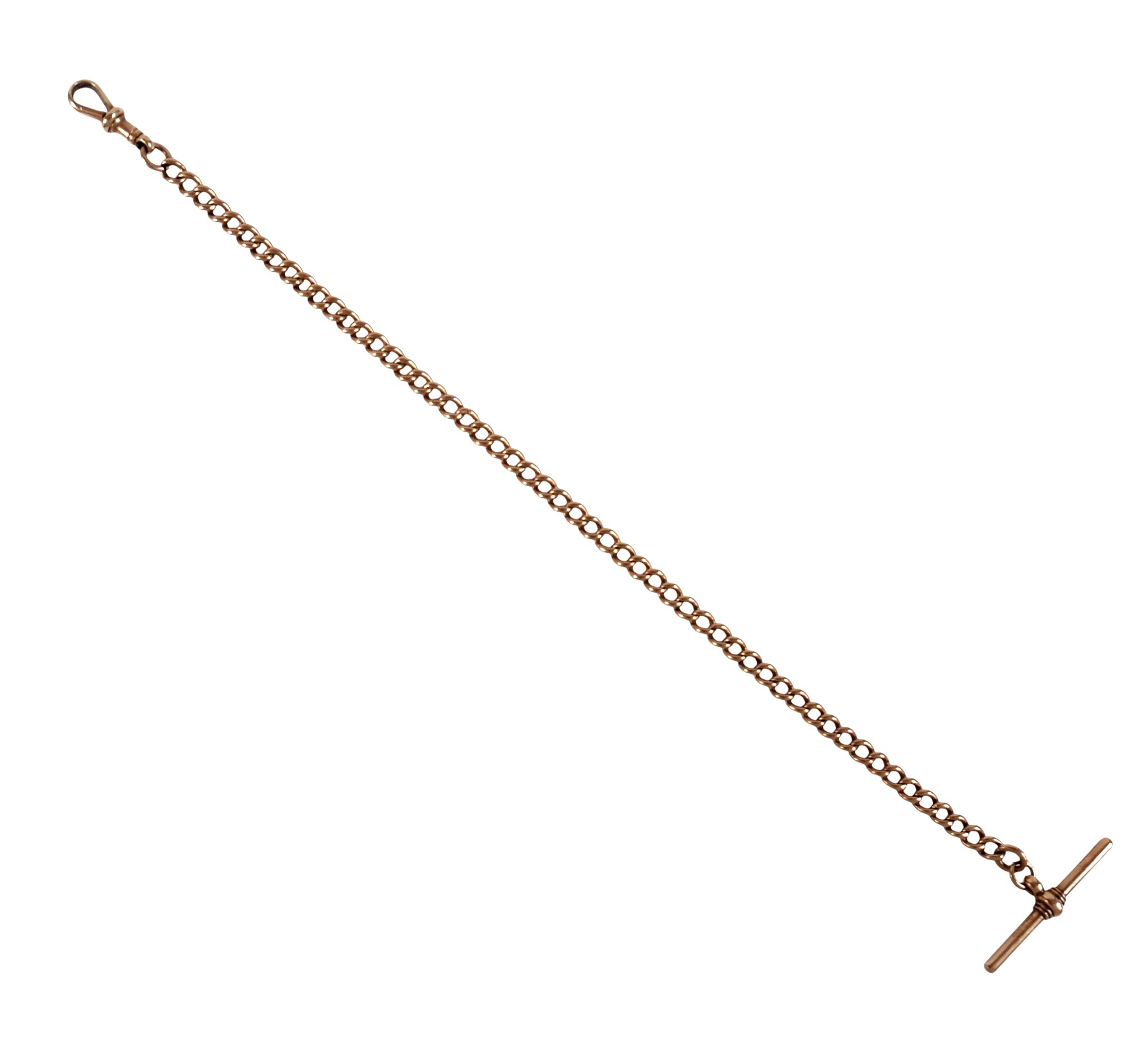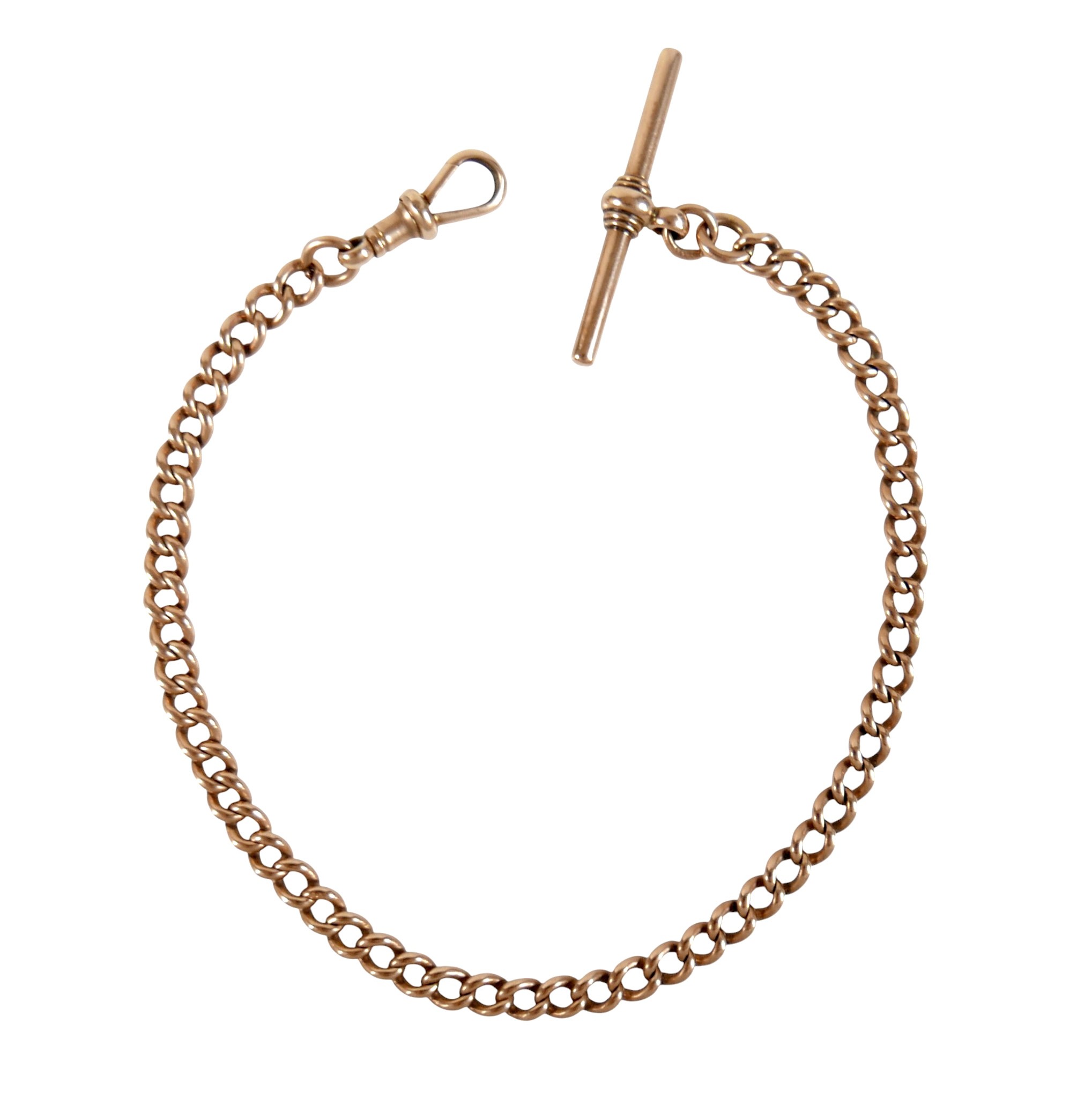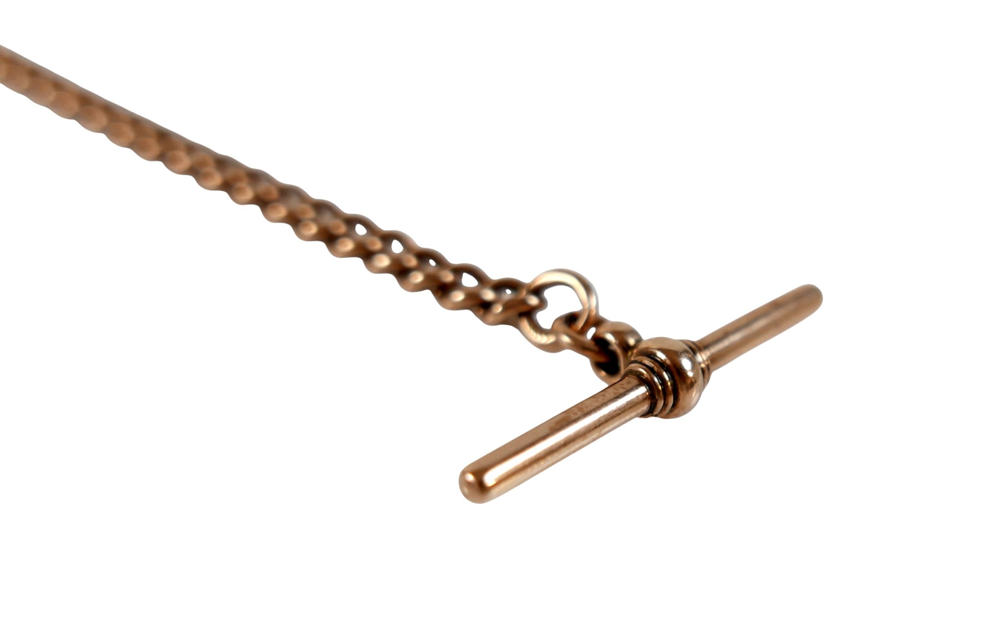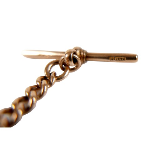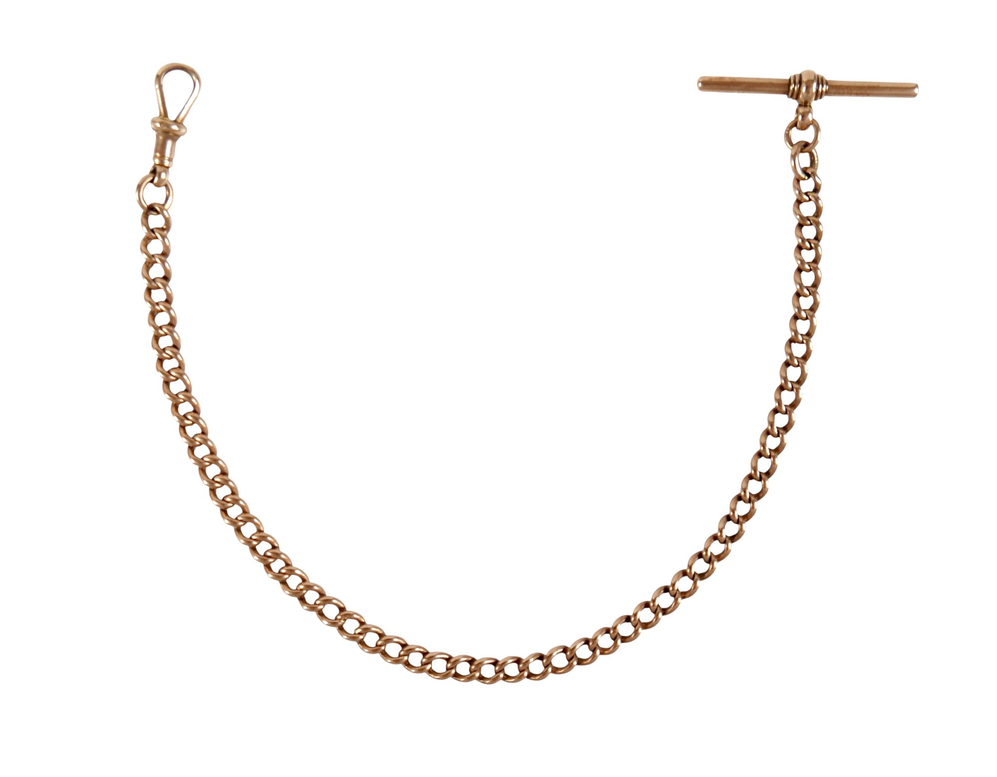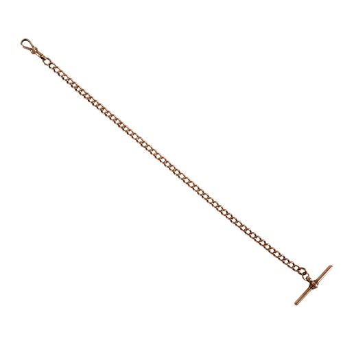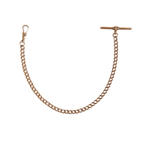 A 9ct yellow gold watch chain each link marked 9 375, the T bar marked W&Co, 25cm long links 4.7mm, weight 17.6g.