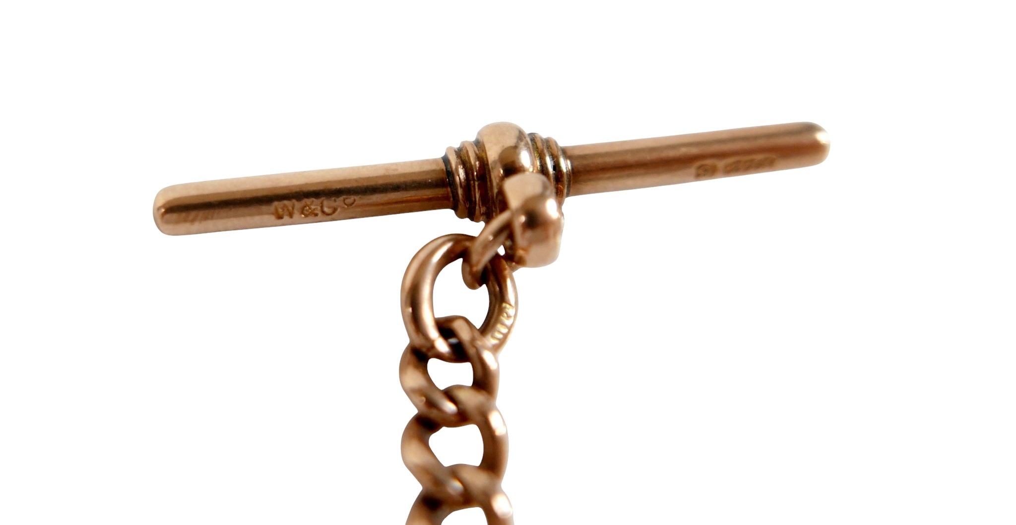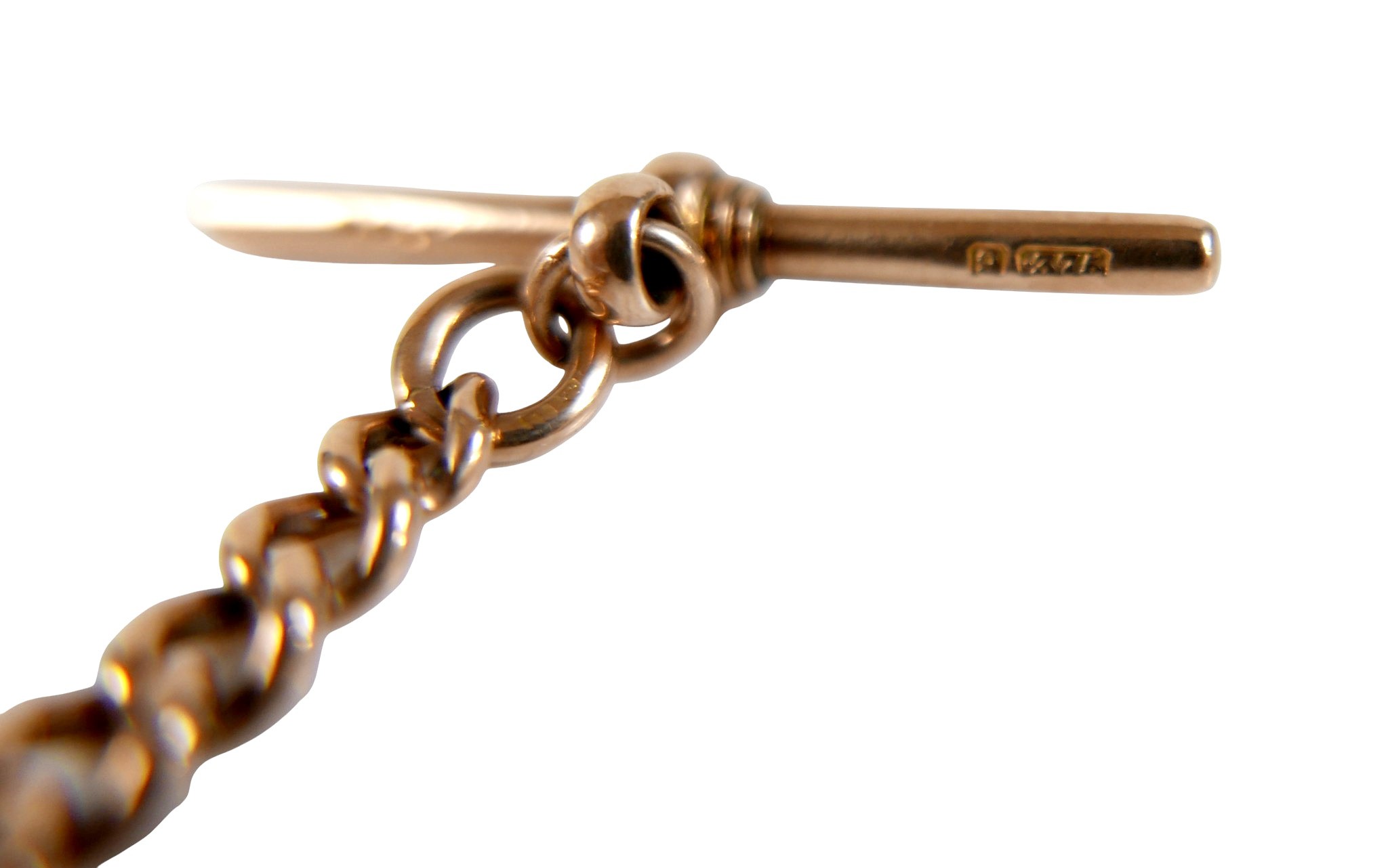 A 9ct yellow gold watch chain each link marked 9 375, the T ...