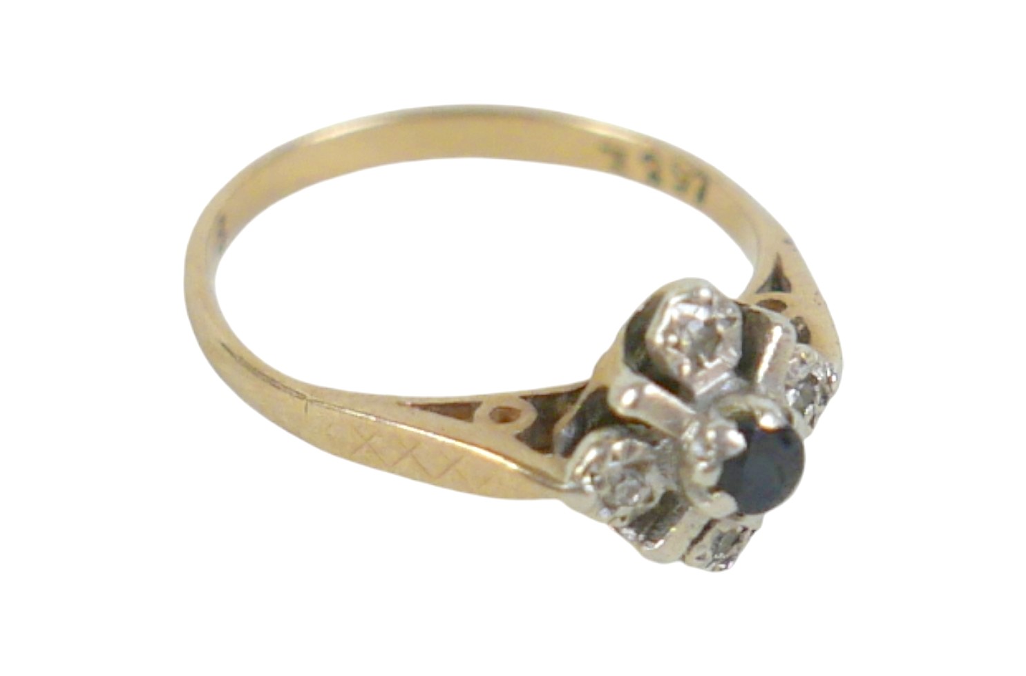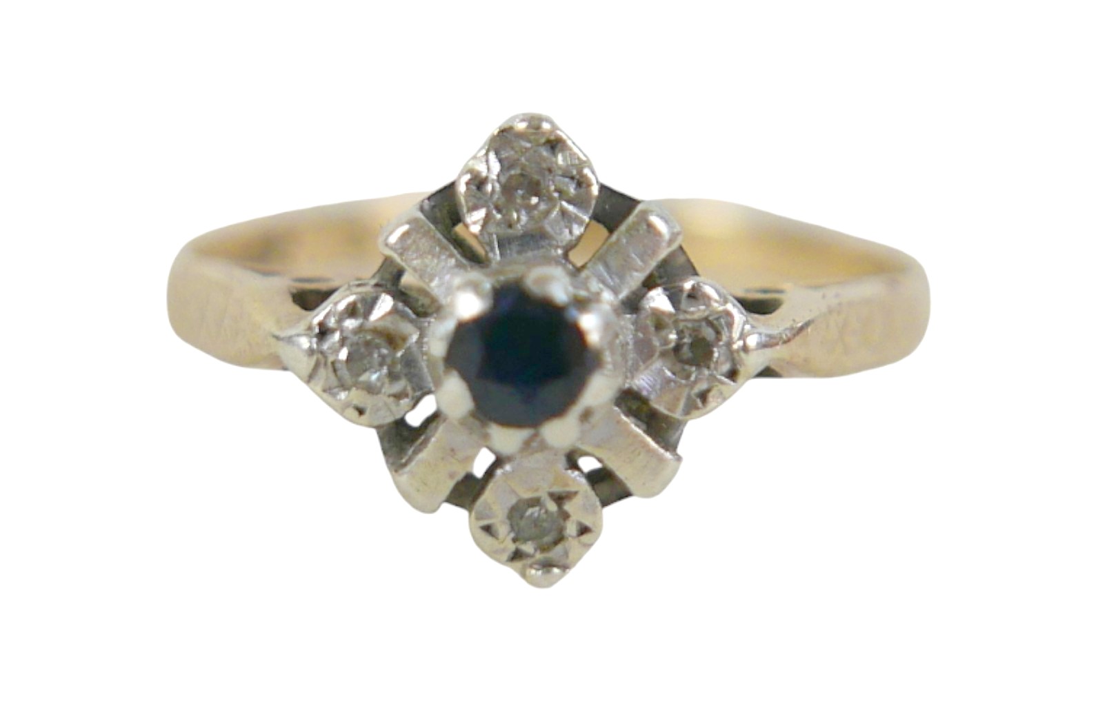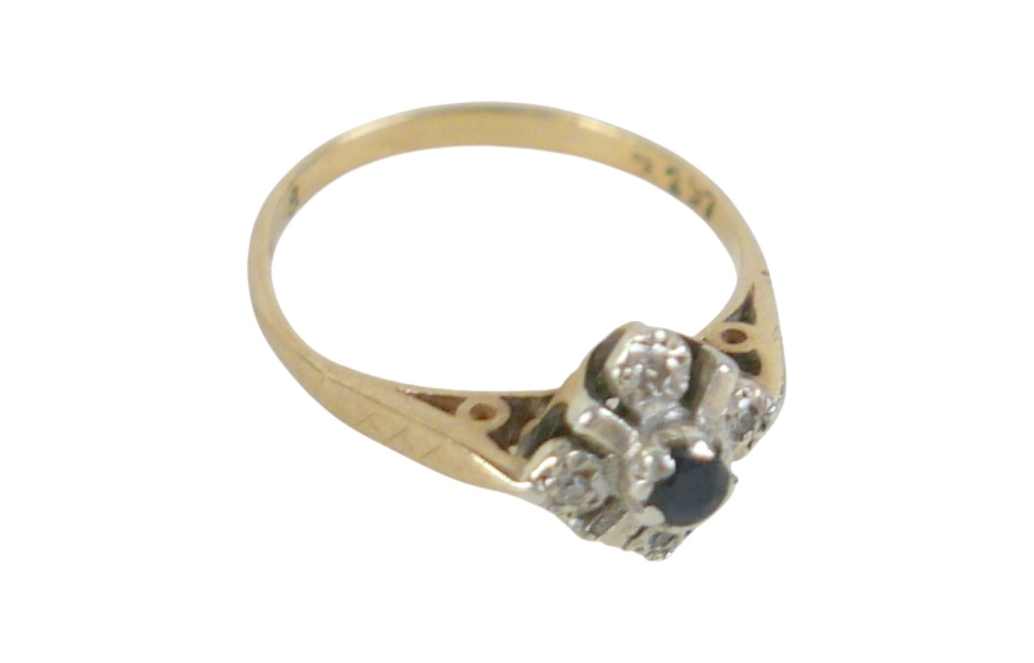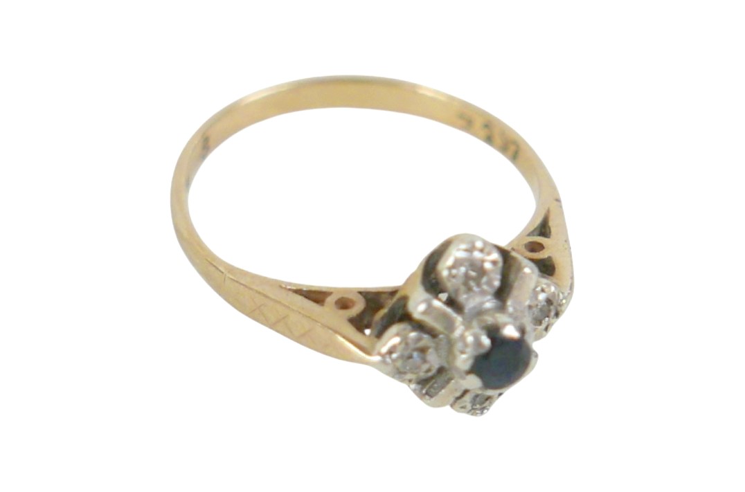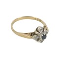 A 9ct yellow gold diamond and sapphire ring head 9 by 9mm, r...