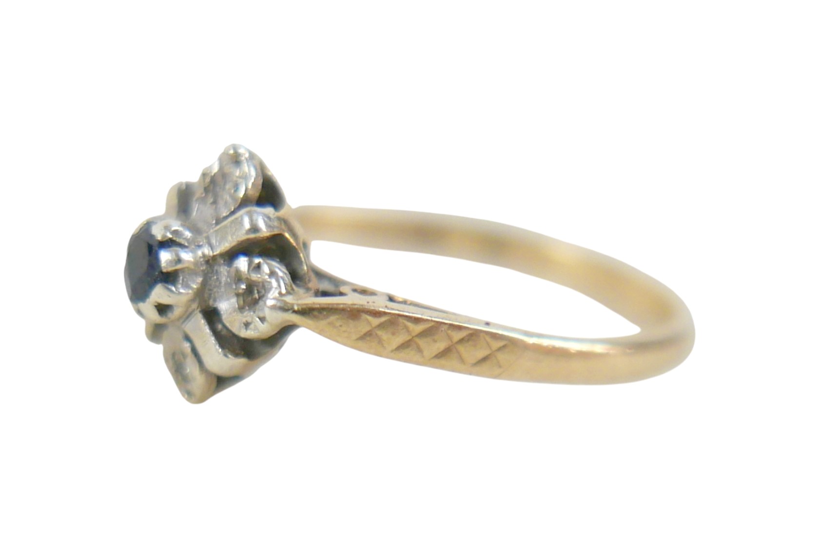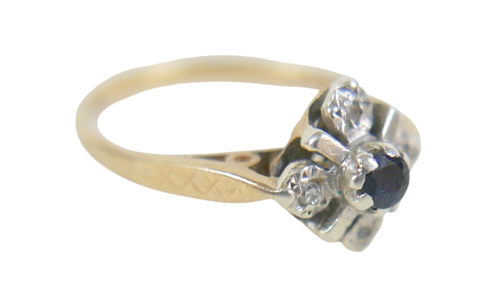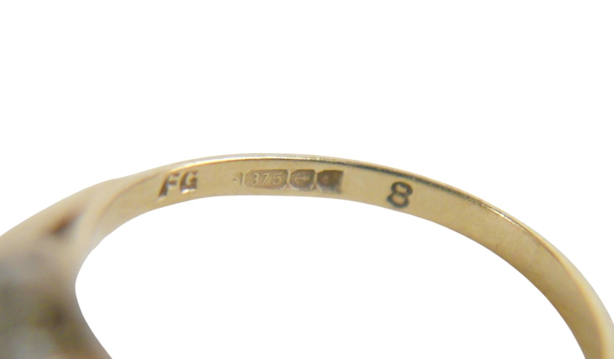 A 9ct yellow gold diamond and sapphire ring head 9 by 9mm, r...