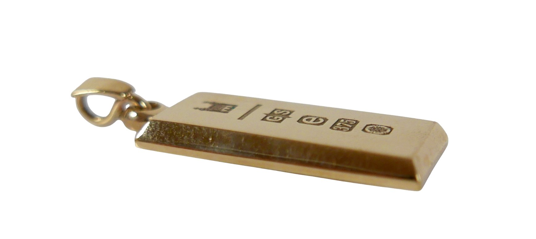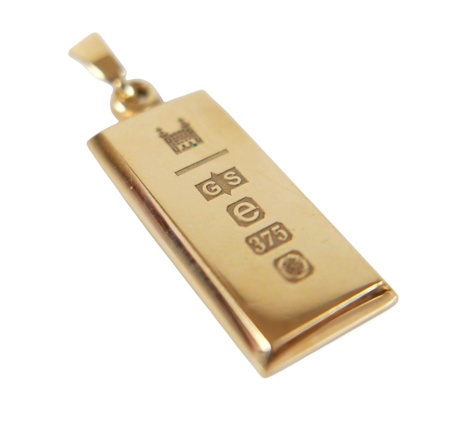 A 9ct gold ingot pendant, stamped 'GS 375', 8.4g