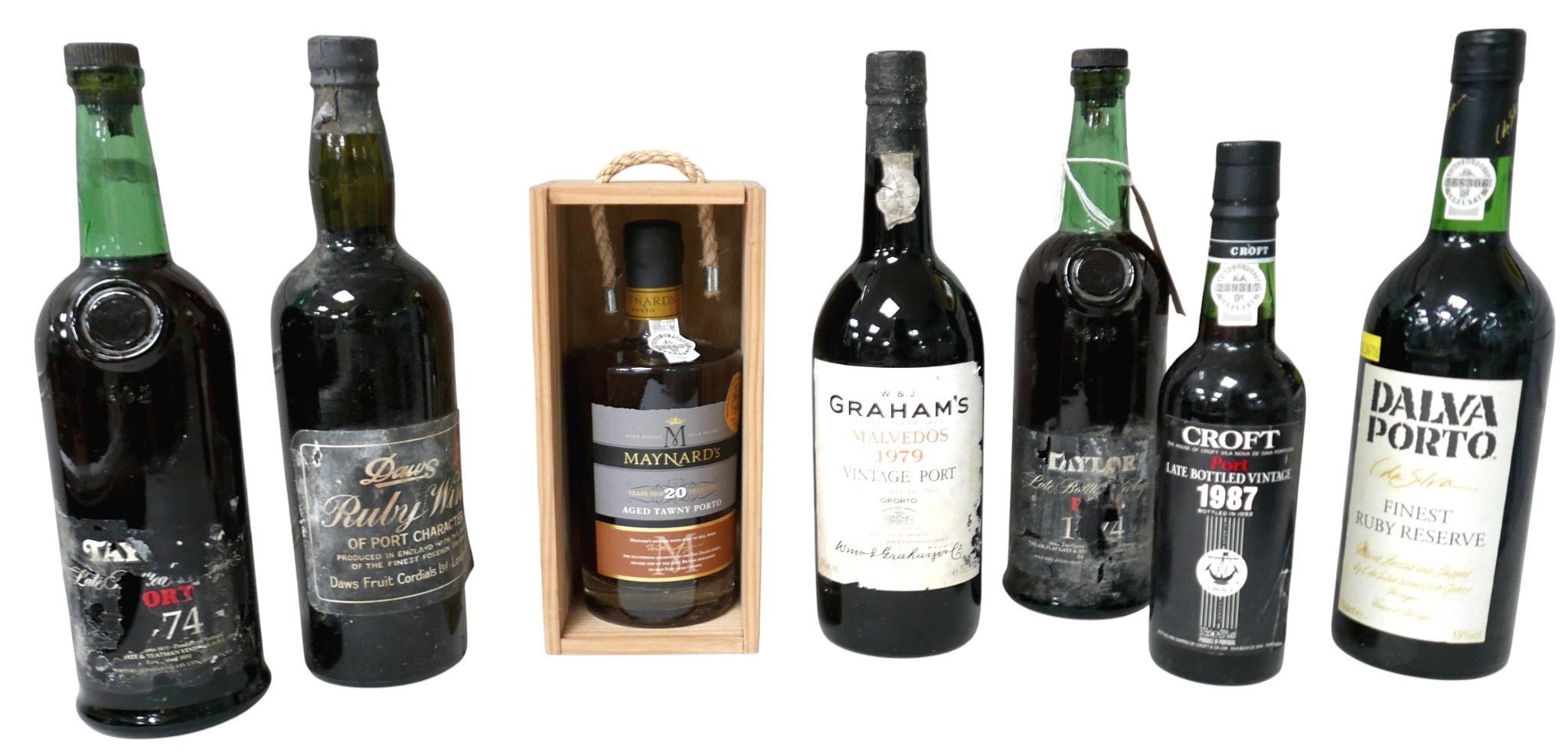 A mixed group of Port and wine including Graham's 1979 Vintage Port, Daw's Ruby Wine of Port Character Taylors and others.(7)