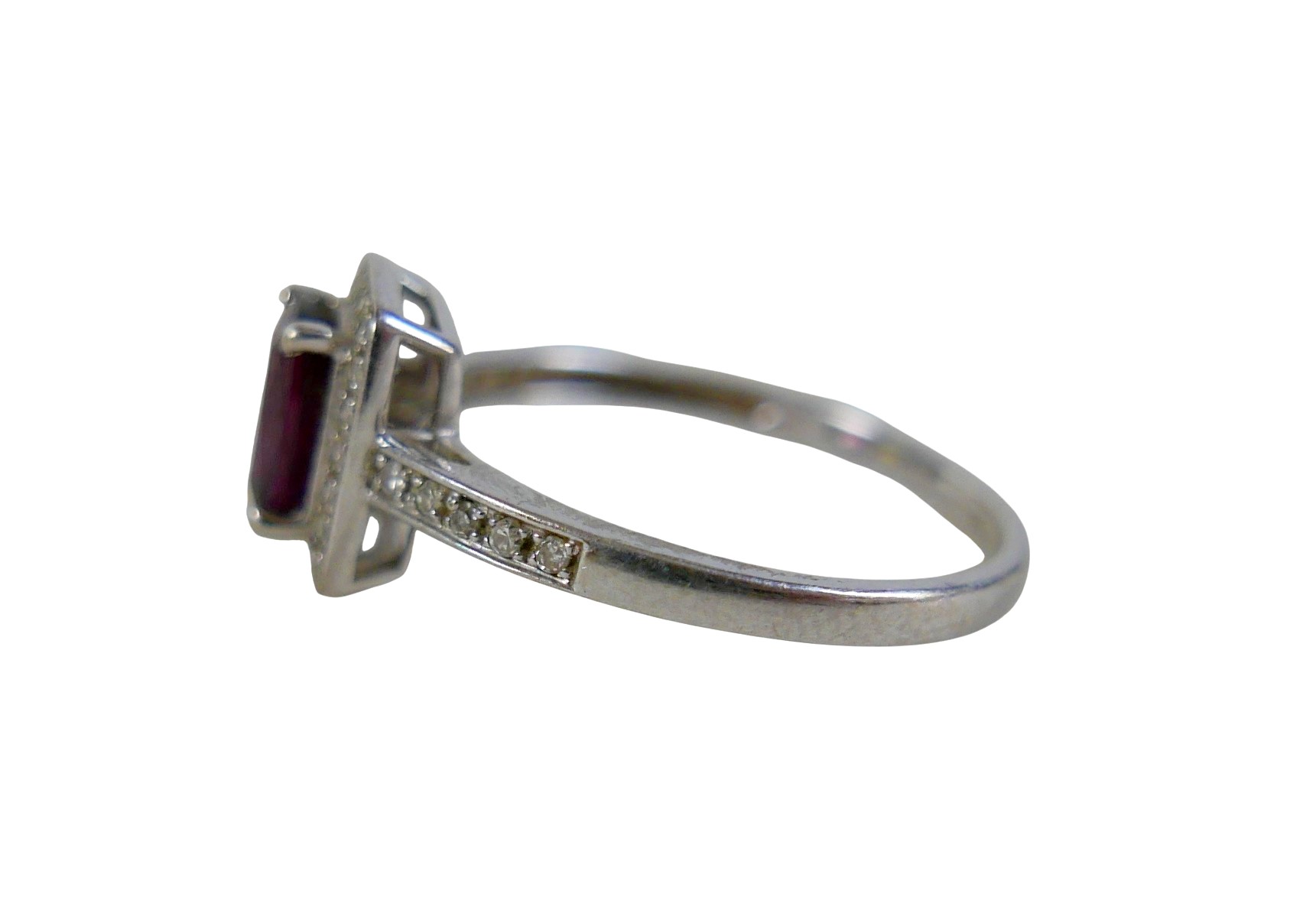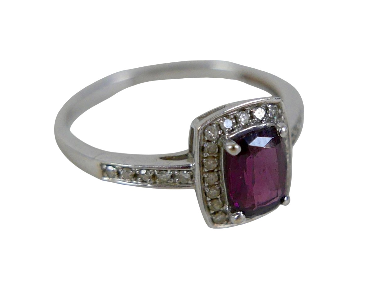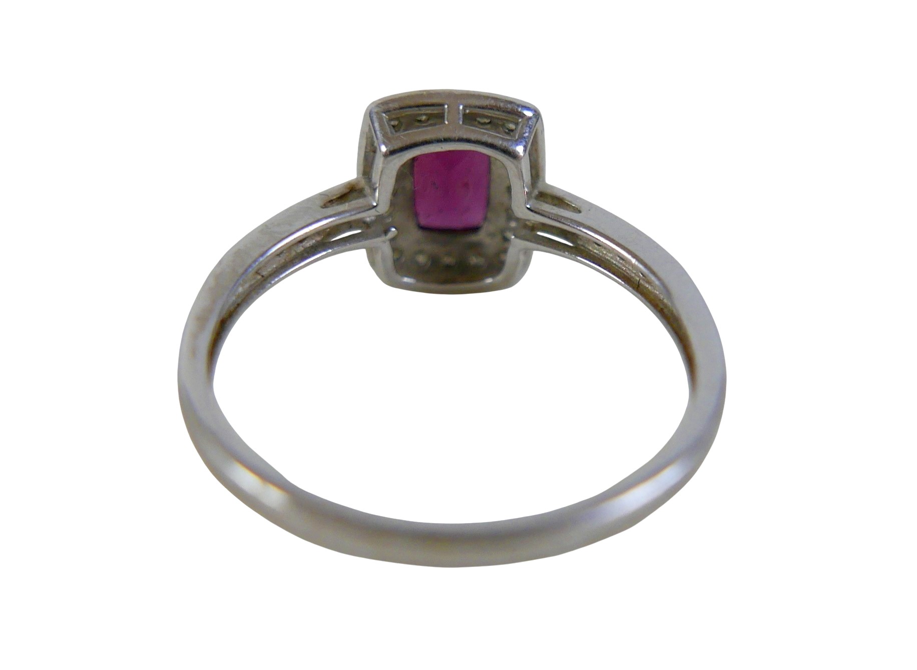 A 9ct white gold ruby and diamond ring size Q, head 19 by 17...