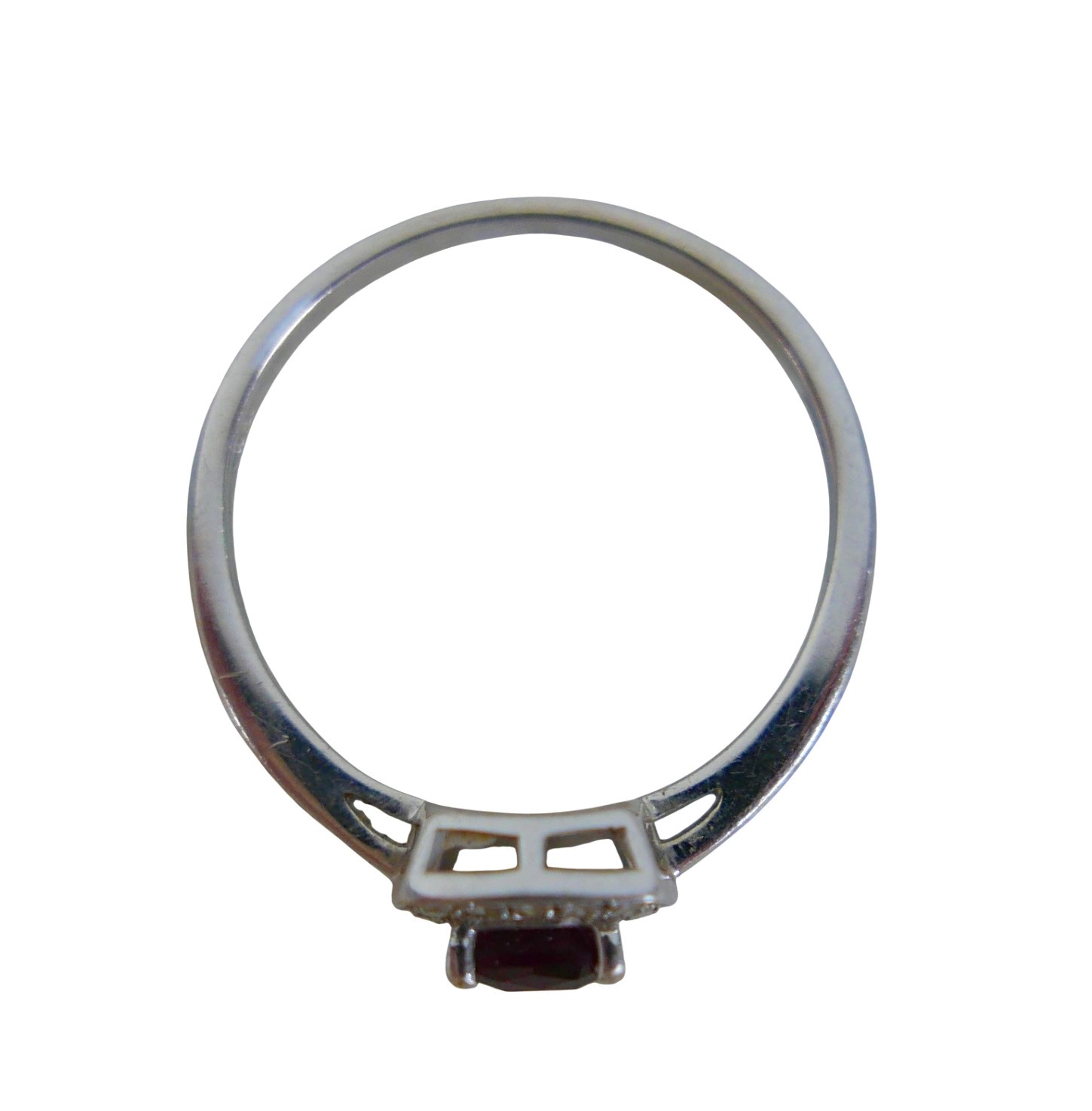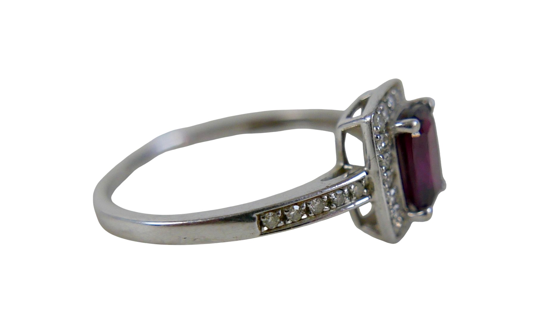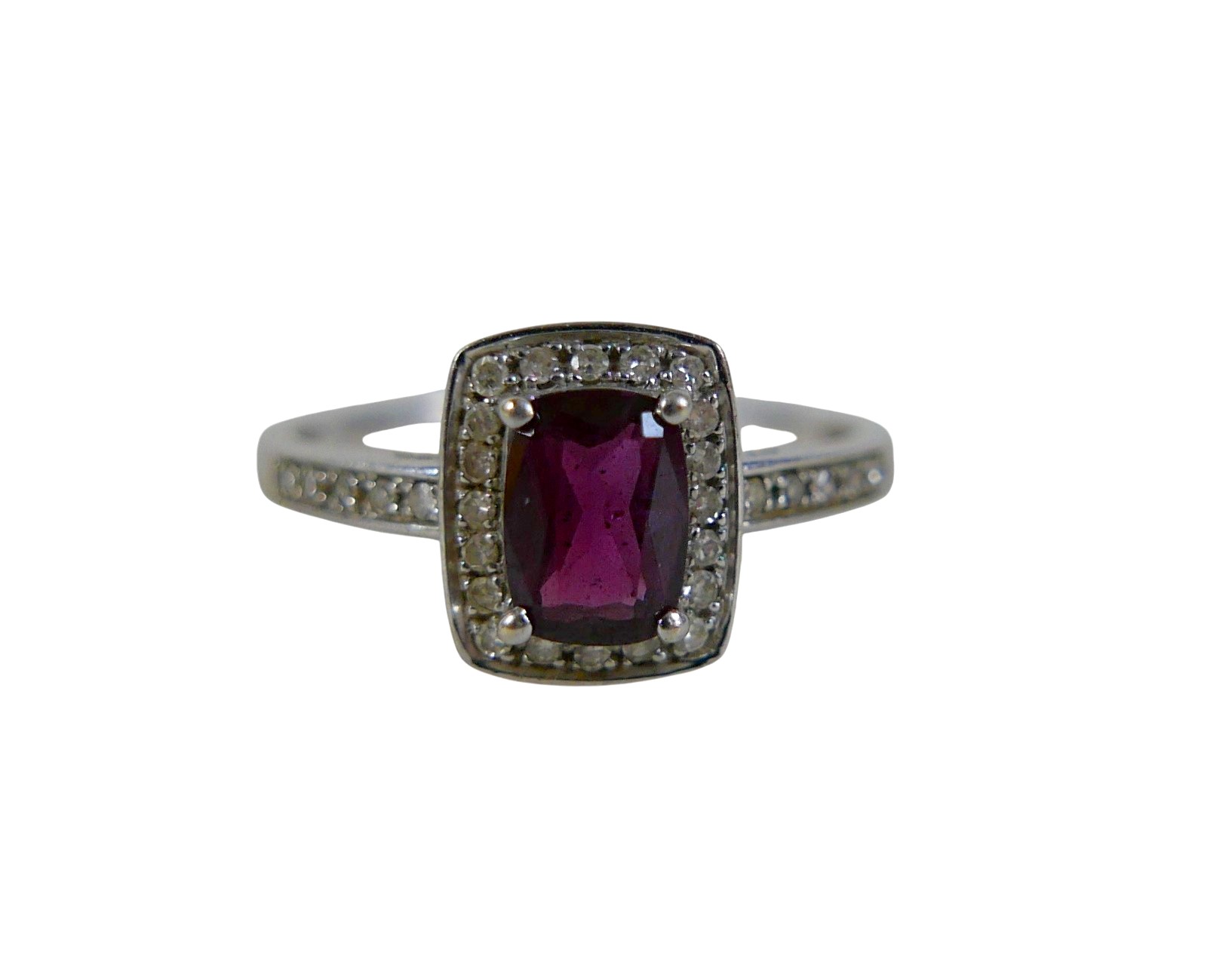 A 9ct white gold ruby and diamond ring size Q, head 19 by 17...