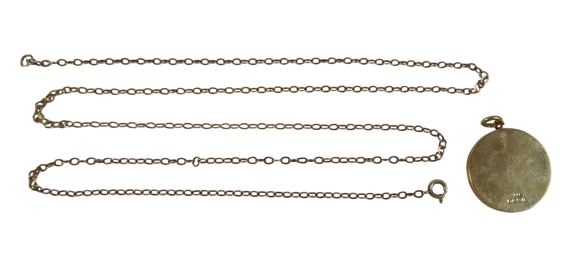 An 18ct gold circular locket, 11.3g together with a yellow metal necklace chain necklace, 79cm long, 6.8g.
