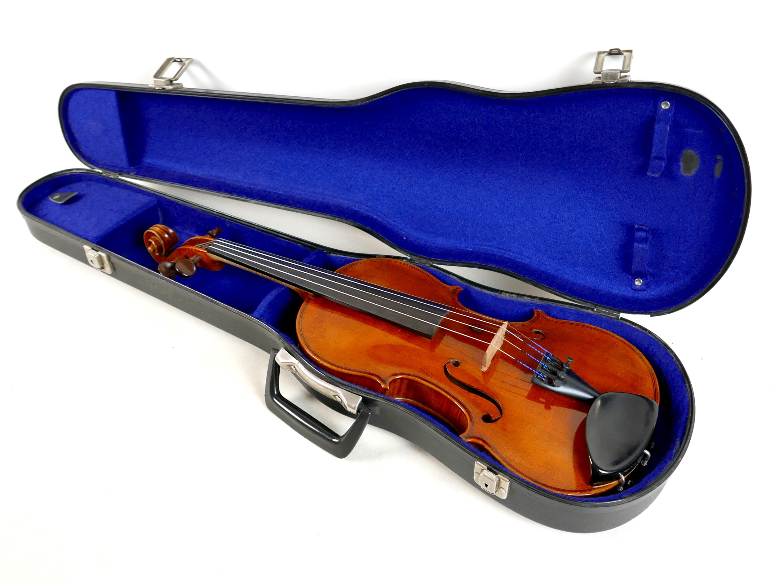 This violin is a little heavier than usual. In good condition with no cracks and very sound.