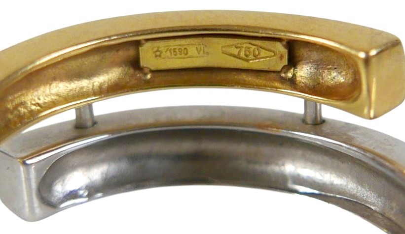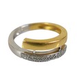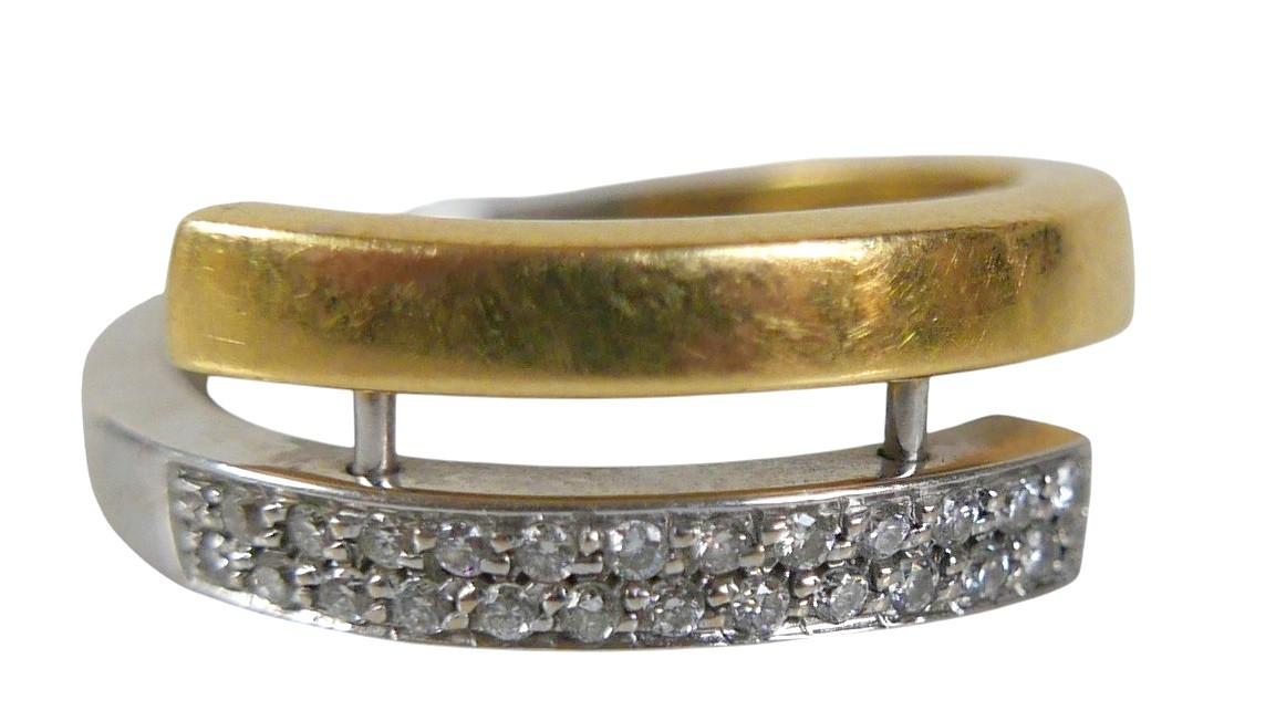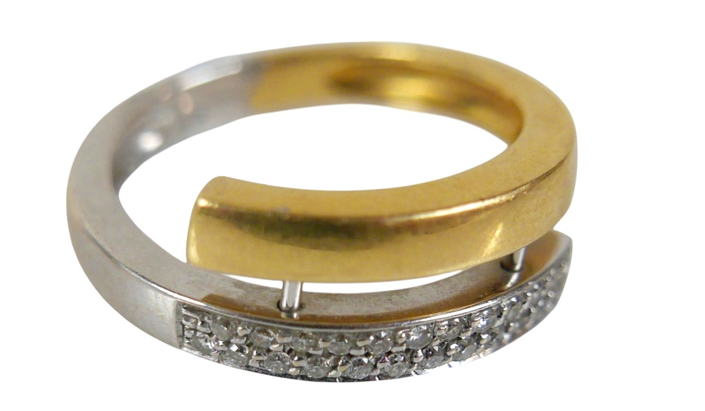 An 18ct bi-gold diamond ring, with two rows of small round cut stones, each approximately 1mm diameter, size P, 6.2g.