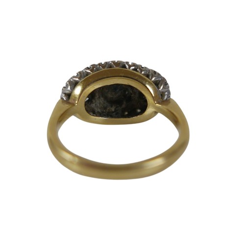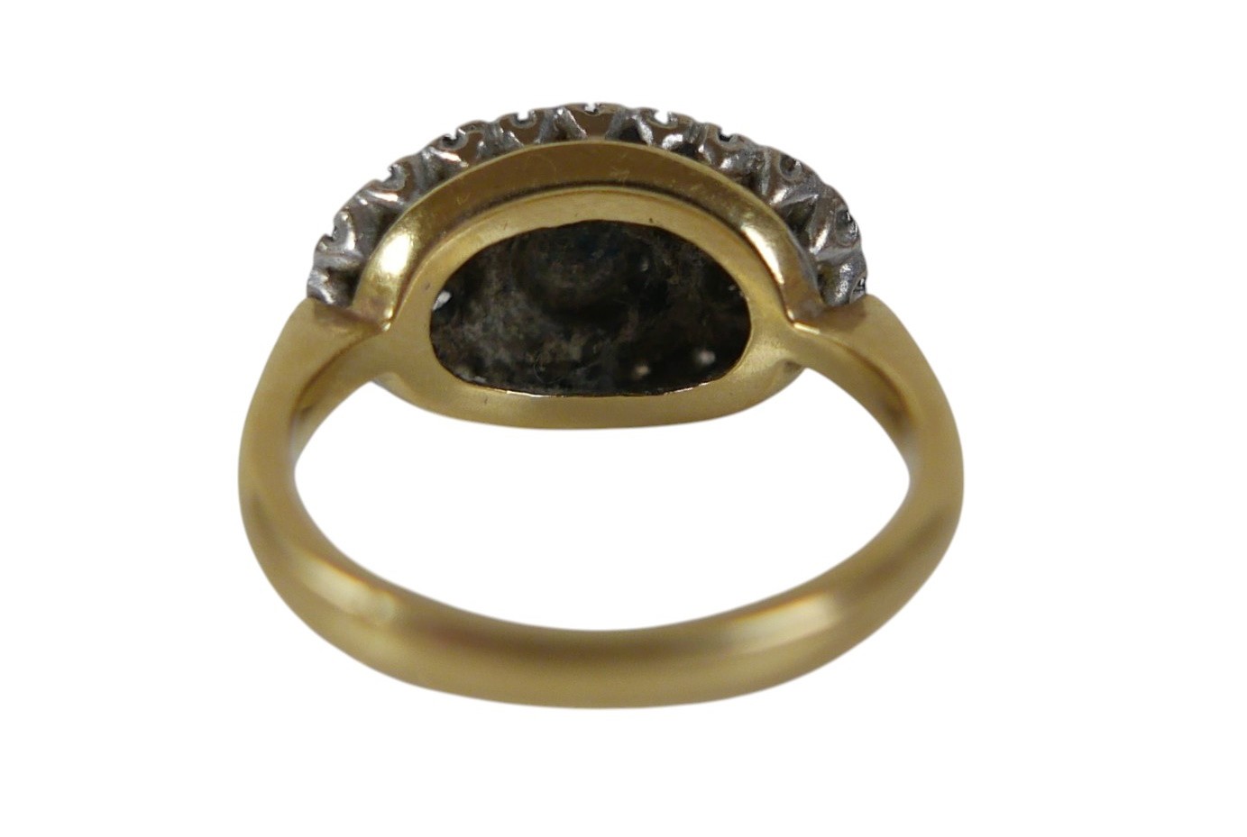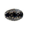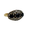 An 18ct gold three stone blue sapphire ring, central stone a...