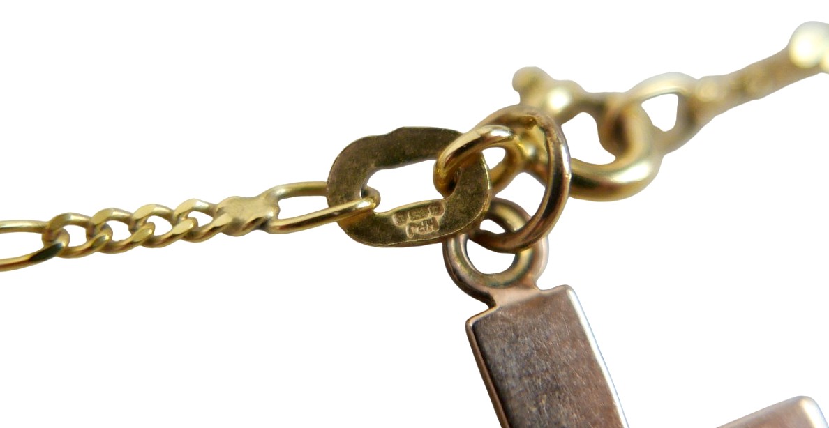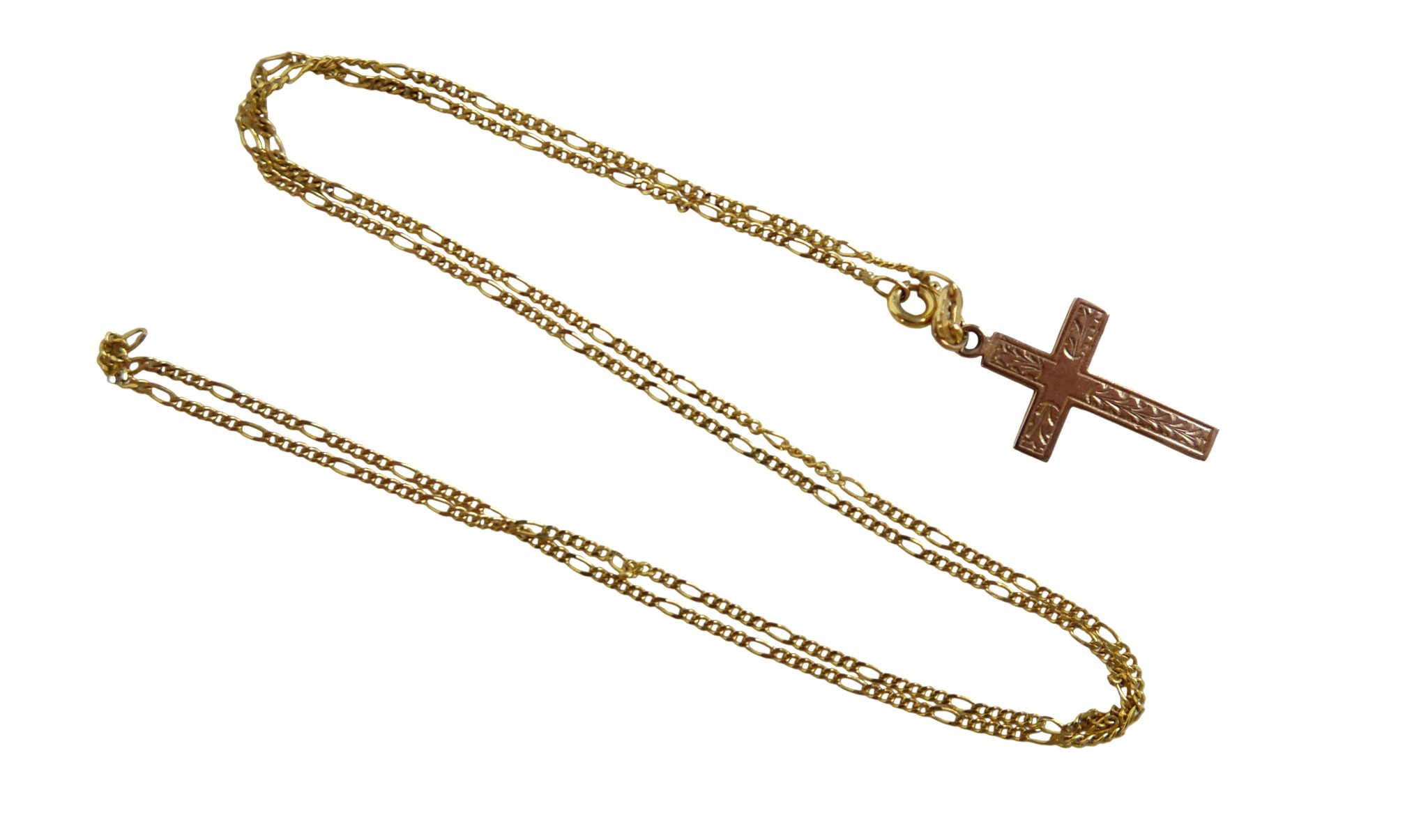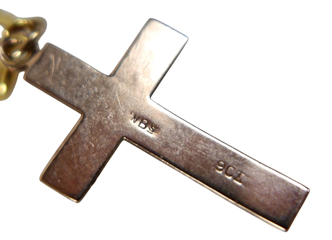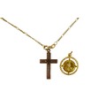 A 9ct yellow gold crucifix on chain and an 18ct St Christoph...