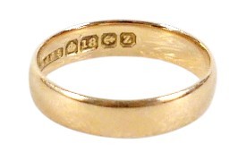 A 22ct gold wedding band ring, size K, 2.5g.